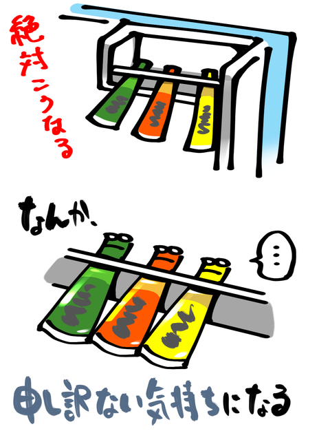 今日のひとコマ・その29「冷蔵庫のドアポケットの基本形」 苦しそう。綺麗に横に並べても2~3回開閉したらチューブ達が必ずこの「喉元の棒で身体を支えられた状態」になってます。キャップが引っかかるので落ちることは絶対にないけど、もしかしたらここってチューブを置く場所じゃない?●Twitterやってます。●登録していただくと更 ... 2019年08月18日 続きを読む