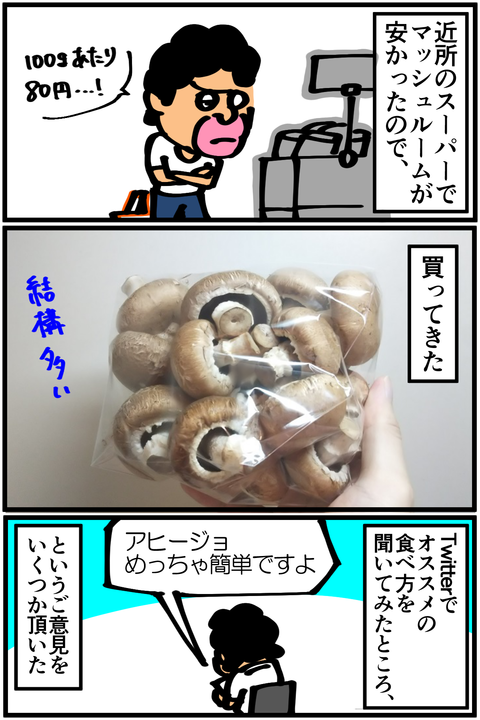 第216話「大量のマッシュルームを買う」 既に雲行きが怪しいどころの話じゃないですが次回に続きます。ちなみに甘長とうがらしは特売品として売っていたので使い道もわからないまま買ったものです。●お知らせMediassortさんとのスマブラ動画、第3弾が公開されました! 今回はさらに特殊なルールで戦っております。 ... 2019年08月09日 続きを読む