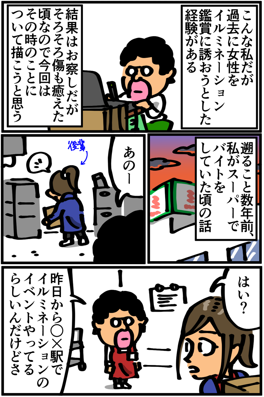 第18話「イルミネーションの思い出」 2018年12月25日 カツカツ生活の日記ではないけど、今日はせっかくのクリスマスだしそれに関連したものを描きました(以前別のサイトで描いた漫画の焼き直しでごめんなさい)。というか興味ない先輩から突然イルミネーション鑑賞に誘われるって割と恐怖だと思うので、まずそこを反省すべきですね。Twitterやってます。 「絵日記」カテゴリの最新記事 < 前の記事次の記事 > コメント コメント一覧 (22) 1. 女 2018年12月25日 22:17 あの…アレみたいですね、ディズニー映画のシュガーラッシュに出てくる、光に集まるバグになったキモい王さま。 …てことは退屈大王ですね!ヨッ!大王! 0 taikutsu_ken がしました 11. 退屈健 2018年12月26日 22:04 >>1 シュガーラッシュ観てないのですが、そんなキャラがいるんですか! これは親近感が沸きますね!笑 0 taikutsu_ken がしました 2. 退屈な名無し 2018年12月25日 22:21 過去の傷エグすぎるwwww 今日も面白かったです!次も楽しみにしてます 0 taikutsu_ken がしました 12. 退屈健 2018年12月26日 22:04 >>2 ありがとうございます! まだ癒えてませんでした!笑 0 taikutsu_ken がしました 3. カナ 2018年12月25日 22:30 そんな事言われたら泣いちゃう(´;ω;`) でもイルミネーション好きなの分かります。 ハウステンボスとか綺麗らしいのですがその為にボッチで長崎行きたくないなぁ(..) 着いてきてくれませんか?www 0 taikutsu_ken がしました 13. 退屈健 2018年12月26日 22:06 >>3 ハウステンボスいいですね~! 是非!と言いたいところなのですが長崎への旅費が無いので、今年は近所のカフェがこじんまりとやっているイルミネーションで我慢します!笑 0 taikutsu_ken がしました 4. 2018年12月25日 22:43 何度見ても辛いエピソードです…(´;ω;`) 0 taikutsu_ken がしました 14. 退屈健 2018年12月26日 22:06 >>4 まだ癒えてませんでした…笑 0 taikutsu_ken がしました 5. ロナウド 2018年12月25日 23:06 一緒に信号機見に行けたら良かったですね 強く生きてください 0 taikutsu_ken がしました 15. 退屈健 2018年12月26日 22:06 >>5 それもありですが、もはやただ並んで信号待ちしてるだけですね!笑 0 taikutsu_ken がしました 6. 糸田JIl 2018年12月25日 23:08 先生!元気出して下さい!女はいなくともむさ苦しい男がここに居ます! 0 taikutsu_ken がしました 16. 退屈健 2018年12月26日 22:07 >>6 俺自身もむさ苦しい男なので良いコンビになれそうですね!笑 0 taikutsu_ken がしました 7. もちお 2018年12月25日 23:14 いつも読んでて辛面白いですけど今回のはただただ辛いですね… 0 taikutsu_ken がしました 17. 退屈健 2018年12月26日 22:08 >>7 ただの鬱エピソードで申し訳ございません…!笑 0 taikutsu_ken がしました 8. メガネ 2018年12月25日 23:31 蛾かよに懐かしさを覚えてしまうww GANMAのやつといい、退屈先生イルミネーションホント好きっすね! そして毎回女性酷いっすね!! 0 taikutsu_ken がしました 18. 退屈健 2018年12月26日 22:09 >>8 イルミネーションは昔からなぜか好きなんですよね~! むしろ好きじゃない方がよかったのでは、とも思ったりします…笑 0 taikutsu_ken がしました 9. 付和雷同男 2018年12月26日 15:11 月がきれいですね (最近更新頻度いいっすね、この調子で毎秒よろしくお願いしたいので体調に気をつけてください。 女ってわからないですねー) 0 taikutsu_ken がしました 19. 退屈健 2018年12月26日 22:09 >>9 オシャレな告白ありがとうございます!笑 しばらくは毎日更新を目標にやっていきます~!(^^) 0 taikutsu_ken がしました 10. 麒麟 2018年12月26日 16:21 たーいーくーつーせーんーせー! この記事も、みんなでクリパ☆の写真もめっっっさ笑いました!! これだから先生大好き!!!ぶっちゅん(イラネ) 0 taikutsu_ken がしました 20. 退屈健 2018年12月26日 22:10 >>10 ありがとうございます、嬉しい限りです! みんな(俺と段ボールと踏み台)で盛り上がりました…!笑 0 taikutsu_ken がしました 21. 最近ハリーポッターに再ハマり 2021年04月02日 23:18 昔の記事にコメントするのもなんだけどこの女の人なんて失礼な人なんだろう 断るにしてももっと思いやりが必要だと思う 0 taikutsu_ken がしました 22. コクハラしね 2022年08月26日 13:55 >>21 先輩の立場を利用して、後輩の同僚女性にコクハラするのは最低だよ。オッサンの告白なんて相手の気持ちを確認してからでないと、ストーカーと変わらんよ。相手の気持ちを無視して、仕事仲間をエロ対象として見て、ダメ元でヤレるかな?と迫るなんて、中年男がやることじゃない。最悪のハラスメントだよ。よく言われてるけど、気のない相手にコクって良いのは中学生までだよ。女性にとって、キモ男から性欲の対象にしてますと意思表示されるのは、ものすごいストレスだから。しかも同僚とか最悪。 0 taikutsu_ken がしました コメントフォーム 名前 コメント 記事の評価 リセット リセット 顔 星 情報を記憶 コメントを投稿する