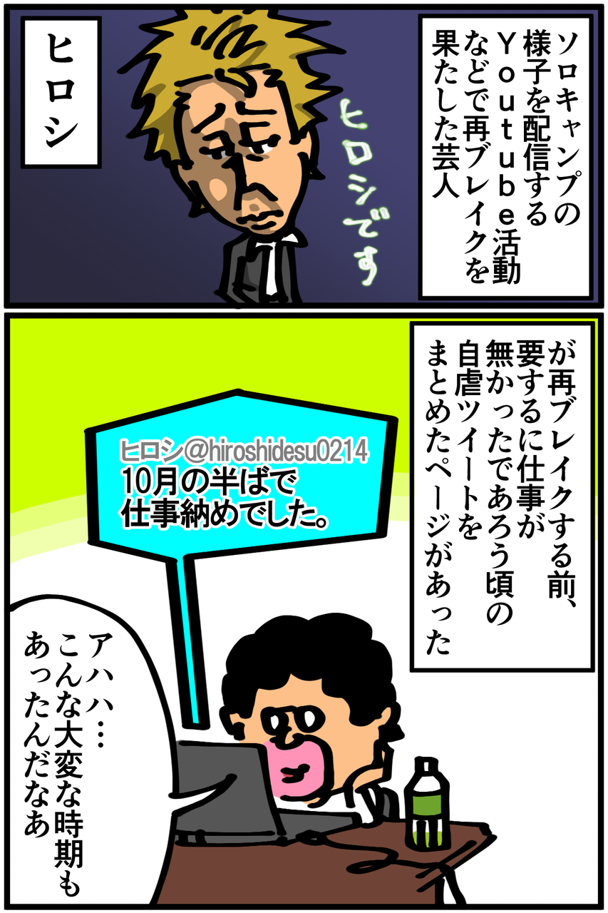 ちなみにですが、ヒロシのYoutubeチャンネルはまったり見られて面白いのでキャンプに興味無い方にもオススメです。