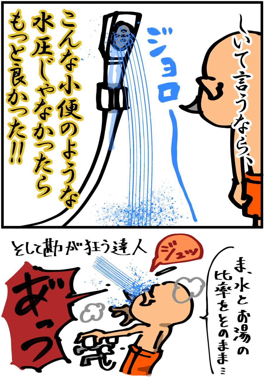 水とお湯のハンドルで温度と同時に水圧も調整しなければいけない、というのが一番厄介なポイントです。