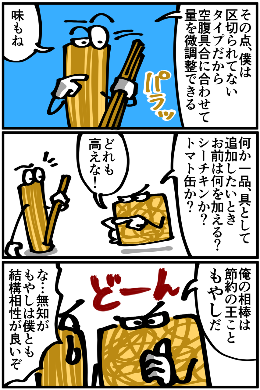 ちなみに野菜を買うときも脳内でバトルが繰り広げられそうになるんですが、もやしが全員一蹴してすぐ終わります。