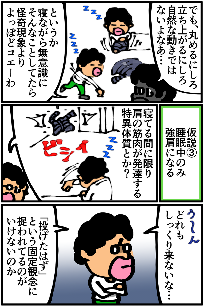 でも真実はわかりませんからね。夜中限定で強靭な肩になっているのかも!