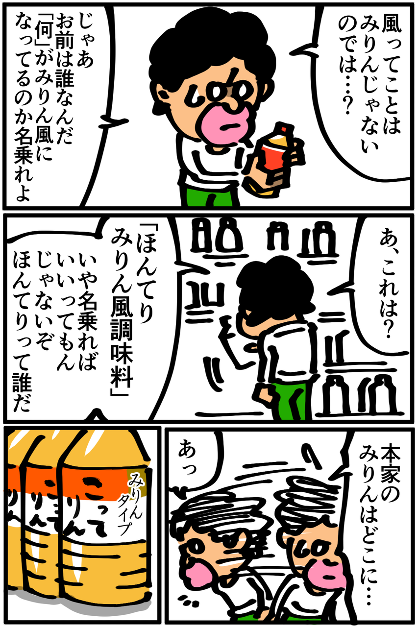 これはこれでみりんと同じように使える便利な調味料だと思うので本みりんにこだわる必要も無いかもしれないけど、やっぱり最初は本家を買いたい。という変な意地。
