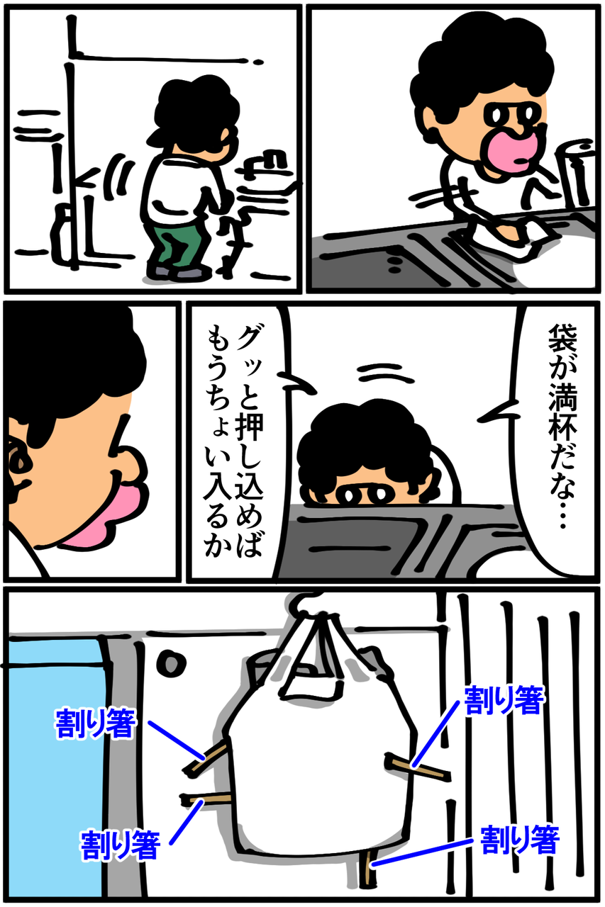 ちなみに小さめのゴミ袋を割り箸やコンビニのスプーン・フォーク専用にすると、変な方向に突き破らなくなって便利ですよ