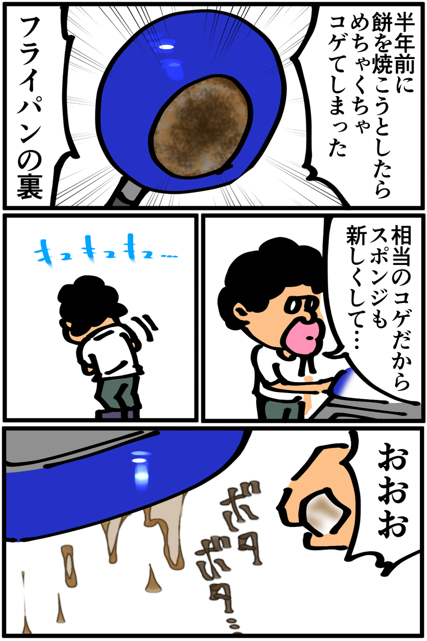 実際には焦げは落ちてはいたんですが、焦げ具合があまりに酷過ぎるため変化がわかりづらかったんだと思います。