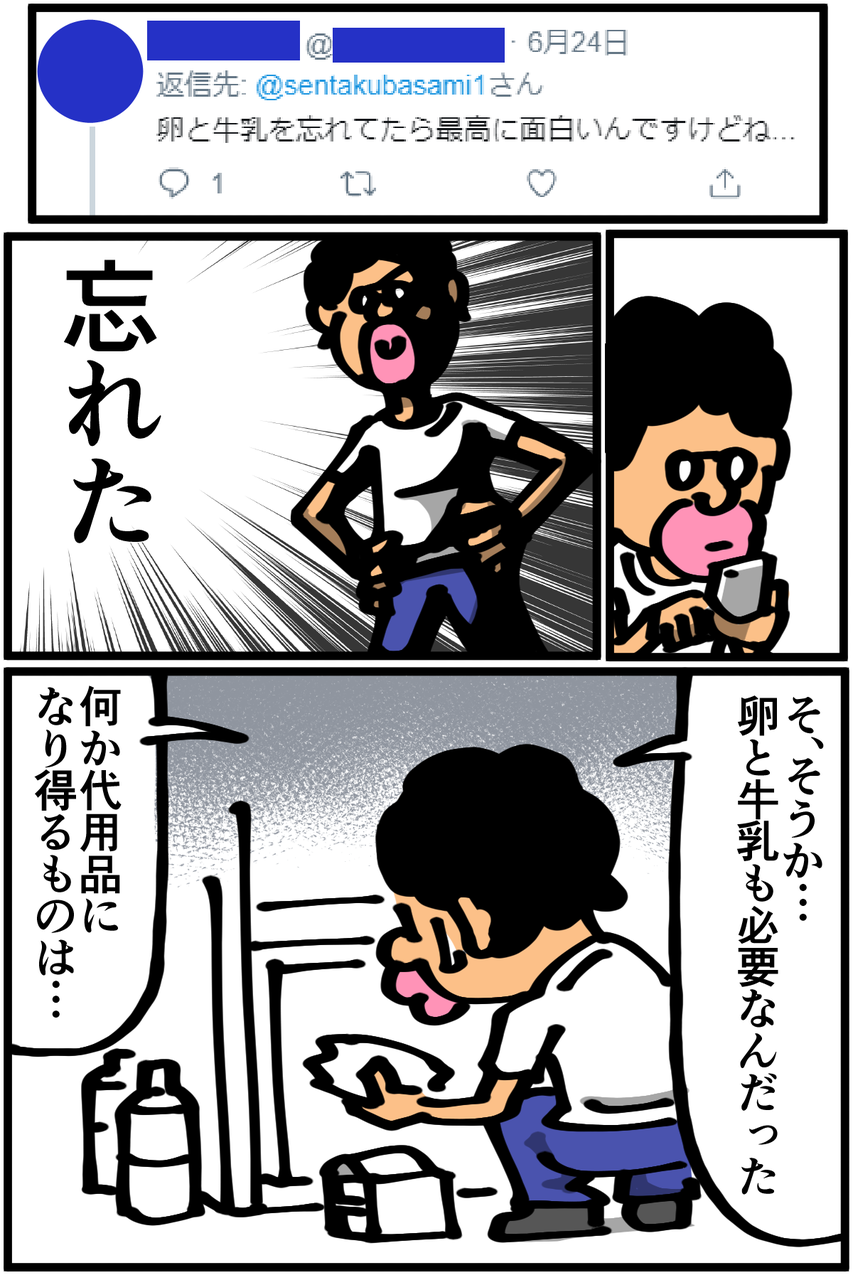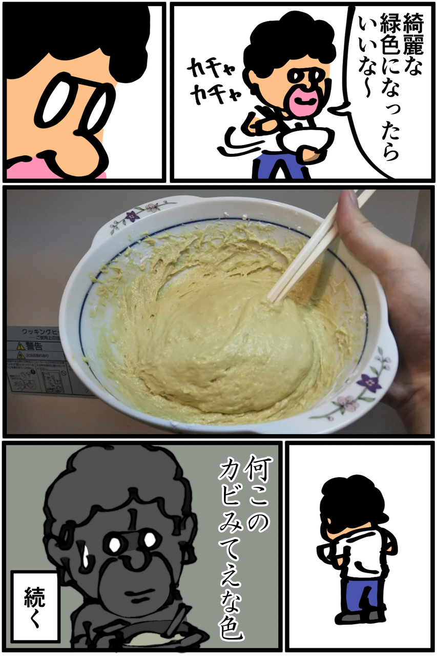 第205話「ホットケーキを作る・前編」 2019年07月27日 後編に続きます。●お知らせ●先日、スマブラSPを触らせてもらったときの様子をMediassort_GAME部さんのYoutubeチャンネルで動画にしていただきました。(スイッチ持ってないくせに)対戦動画を視聴して培ったエアプパワーを発揮するためにトーナメント企画に参戦したので是非ご覧ください! ●Twitterやってます。●登録していただくと更新通知がLINEで届きます↓ 「絵日記」カテゴリの最新記事 「料理」カテゴリの最新記事 < 前の記事次の記事 > コメント コメント一覧 (28) 1. 名無し 2019年07月27日 22:22 美味しそう。 0 taikutsu_ken がしました 15. 退屈健 2019年07月28日 17:22 >>1 この時点ではまだ美味しそうですね!笑 0 taikutsu_ken がしました 2. 砂糖 2019年07月27日 22:22 まだ美味しそう 0 taikutsu_ken がしました 16. 退屈健 2019年07月28日 17:22 >>2 まだ色んな可能性がありそうな見た目ですね!笑 0 taikutsu_ken がしました 3. 手抜き主婦 2019年07月27日 22:22 卵牛乳なしで、水でも作れます! ってパッケージに書いてありませんか? でも豆乳入りも美味しそう! 0 taikutsu_ken がしました 17. 退屈健 2019年07月28日 17:23 >>3 パッケージにはないんですが水でも作れるとTwitterで教えていただいたのでいつか挑戦してみます! 0 taikutsu_ken がしました 4. かめ 2019年07月27日 22:25 ここでもやっぱり割り箸なんですね! ブレない笑 0 taikutsu_ken がしました 18. 退屈健 2019年07月28日 17:23 >>4 もはやレギュラーのようにうちの食事に毎回登場してます!笑 0 taikutsu_ken がしました 5. 初投稿です 2019年07月27日 22:31 食ってみな、飛ぶぞ 0 taikutsu_ken がしました 19. 退屈健 2019年07月28日 17:23 >>5 キマれそうですね!笑 0 taikutsu_ken がしました 6. たけのこむら 2019年07月27日 22:42 まだ全然いける!!! 当たり前のようにバターとメープルシロップは無いだろうけど無くても抹茶味なら全然いけそう 期待!! 0 taikutsu_ken がしました 20. 退屈健 2019年07月28日 17:24 >>6 バター、メープルシロップ…!当然のようにないですが常に甘いもの食べたい状態なのでまさに今欲しいアイテムですね!笑 0 taikutsu_ken がしました 7. 名無し 2019年07月27日 23:15 思ったより染まらないんですよね。 以前100均で抹茶の粉を買ってきて混ぜた際、分量が足りなかったからか同じ様な感じになりました。 0 taikutsu_ken がしました 21. 退屈健 2019年07月28日 17:25 >>7 ホットケーキミックス自体の白さで思ったより中和されちゃいますね! 綺麗な色を出すには相当な量の抹茶が必要そうですね~;; 0 taikutsu_ken がしました 8. ふーちゃ 2019年07月27日 23:15 組み合わせ的には美味しそう…… あとは焼く技術?(笑) パンケーキは水だけでオッケーでしたが、ホットケーキも水だけで出来たりするんでしょうか?う~ん🤔 0 taikutsu_ken がしました 22. 退屈健 2019年07月28日 17:26 >>8 焼く技術…もっとも不足している部分です!笑 水だけでも作れるみたいなのでいつかそれも挑戦してみます! 0 taikutsu_ken がしました 9. チャイ 2019年07月27日 23:24 せっかくの上質な粉を冒険料理に、、 写真だとまだおいしそーな段階ですがどうなるのか。 0 taikutsu_ken がしました 23. 退屈健 2019年07月28日 17:26 >>9 肝心の焼く技術が壊滅的なので暗い未来が…笑 0 taikutsu_ken がしました 10. 糸田JIl 2019年07月28日 00:37 (今のところは)凄い美味しそうですね。笑 さすがにあとは焼くだけなのでなんも心配はしてませんが気をつけて下さいね。(フラグ 0 taikutsu_ken がしました 24. 退屈健 2019年07月28日 17:27 >>10 肝心の調理技術が壊滅的なので余裕のフラグ回収をしそうです!笑 0 taikutsu_ken がしました 11. ぽん子 2019年07月28日 03:35 油がなくてパンケーキが焦げるというオチなら最高! 0 taikutsu_ken がしました 25. 退屈健 2019年07月28日 17:27 >>11 なんという悲しい結末!笑 0 taikutsu_ken がしました 12. なーこ 2019年07月28日 09:37 わー楽しみ♪ 0 taikutsu_ken がしました 26. 退屈健 2019年07月28日 17:27 >>12 本日更新いたします~! 0 taikutsu_ken がしました 13. みり子 2019年07月28日 10:07 自滅期待w(動画面白かったですw) それをマグカップに入れてレンチンしたら抹茶蒸しパンになりますよー。今度お試しください😁 0 taikutsu_ken がしました 27. 退屈健 2019年07月28日 17:28 >>13 ありがとうございます! 同日に収録した動画もアップされるので是非そちらもご覧ください~! えっ、そんな方法が!試してみます~! 0 taikutsu_ken がしました 14. 芋子 2019年07月28日 10:19 退屈先生、粉に興奮し過ぎ(笑) 次回楽しみ🎵 0 taikutsu_ken がしました 28. 退屈健 2019年07月28日 17:29 >>14 危ない眼光で粉に興奮してしまいました!笑 0 taikutsu_ken がしました コメントフォーム 名前 コメント 記事の評価 リセット リセット 顔 星 情報を記憶 コメントを投稿する
