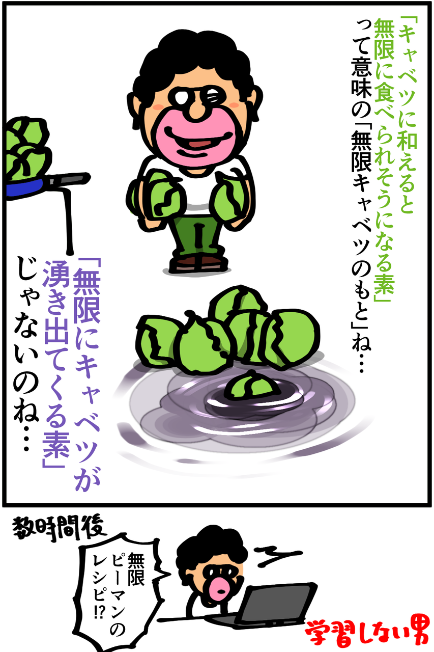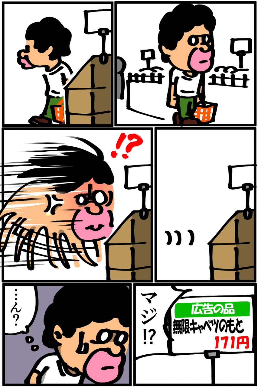 第208話「無限キャベツのもと」 2019年07月31日 本来の意味としての商品でも魅力的なので欲しかったんですが、よく考えたら多分これがなくてもキャベツは無限に食えるので買いませんでした。●Twitterやってます。●登録していただくと更新通知がLINEで届きます↓●お知らせ●先日、スマブラSPを触らせてもらったときの様子をMediassort_GAME部さんのYoutubeチャンネルで動画にしていただきました。(スイッチ持ってないくせに)対戦動画を視聴して培ったエアプパワーを発揮するためにトーナメント企画に参戦したので是非ご覧ください! 「絵日記」カテゴリの最新記事 < 前の記事次の記事 > コメント コメント一覧 (10) 1. ま 2019年07月31日 22:01 無限キャベツの素美味しいですよ それはさておき、キャベツの芯を取っておいて植木鉢に植えると、元気な個体は葉っぱが生えてきます 葱の根っこも 百均で土と植木鉢を揃えれば完璧です ついでに二十日大根なんか育ててみるのもどうでしょう 肥料もダイソーに売ってます 0 taikutsu_ken がしました 6. 退屈健 2019年08月05日 13:34 >>1 えっ、そんな栽培方法が!! 上手く育てれば食費が浮きますね…! いつか試してみますありがとうございます! 0 taikutsu_ken がしました 2. む 2019年07月31日 22:02 無限お金のもとが欲しいです。 0 taikutsu_ken がしました 7. 退屈健 2019年08月05日 13:35 >>2 無限お金のもとは多少無理してでも買いたいですね!笑 0 taikutsu_ken がしました 3. むら 2019年07月31日 22:24 表現と受け止め方は難しいですよね(;_;)簡単なことだと思われますが。 0 taikutsu_ken がしました 8. 退屈健 2019年08月05日 13:35 >>3 俺が自分に都合のいい受け取り方をしているだけ説もあります!笑 0 taikutsu_ken がしました 4. 糸田JIl 2019年07月31日 22:29 いつか本当に無限にキャベツが湧き出る装置が出るといいっすね。笑 でもあの無限キャベツも美味しいのでぜひ食べてみて欲しいです。笑 0 taikutsu_ken がしました 9. 退屈健 2019年08月05日 13:36 >>4 あれも美味しそうだったんでいつか買ってみたいと思います! キャベツはよく買うので試してみたい…! 0 taikutsu_ken がしました 5. はるきち 2019年07月31日 22:39 この名前見る度に私も騙されかけてます っていうか割となんでも無限に食えるよ〜〜(◞‸◟) 0 taikutsu_ken がしました 10. 退屈健 2019年08月05日 13:36 >>5 わかります!俺も割となんでも無限に食えちゃって困ってます…笑 0 taikutsu_ken がしました コメントフォーム 名前 コメント 記事の評価 リセット リセット 顔 星 情報を記憶 コメントを投稿する