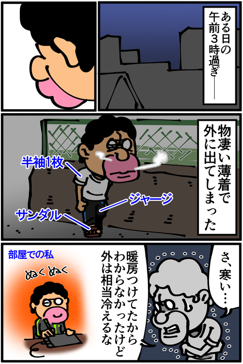 第382話「薄着で外出してしまった夜・後編」 2020年02月25日 前回の記事 の続きです。3分が限界のところ、120分も耐えなきゃいけないところでした。探したことないけどうちの近くに漫喫とかってあるんだろうか…。●Twitterやってます。●登録していただくと更新通知がLINEで届きます↓ ... 2020年02月25日 続きを読む