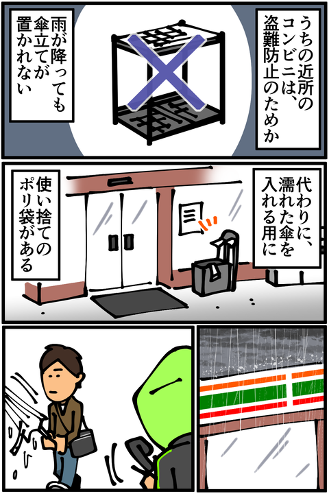 第379話「傘立ての無いコンビニ」 2020年02月22日 ミスかどうかはともかく、放り投げながら颯爽と入店する姿はなんかカッコいいなと感じてしまった。というかジャージが歯磨き粉で汚れてる情報要らないですね。●Twitterやってます。●登録していただくと更新通知がLINEで届きます↓ ... 2020年02月22日 続きを読む