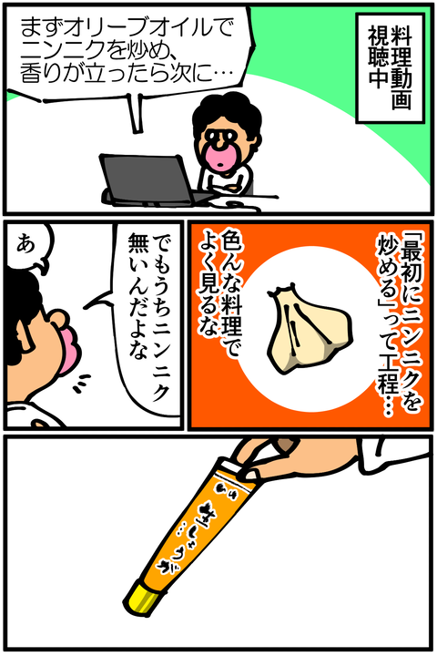 第380話「香味野菜で香り付け」 2020年02月23日 炒めてる間待っててくれるかな。というかチューブなのがよくなかったんでしょうか。●Twitterやってます。●登録していただくと更新通知がLINEで届きます↓ ... 2020年02月23日 続きを読む