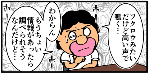 第1427話「謎の鳥の正体を探る」 2023年06月07日 安アパートでカツカツな生活を送る男の漫画ブログです。金が底を尽きてくたばるようなことがなければ毎日更新します。その後鳴き声が聞こえなくなったので多分バイクで去ったんだと思います(適当)。とか言いつつ気になったので色々と調べてみたんですがアオバズクという鳥 ... 2023年06月07日 続きを読む