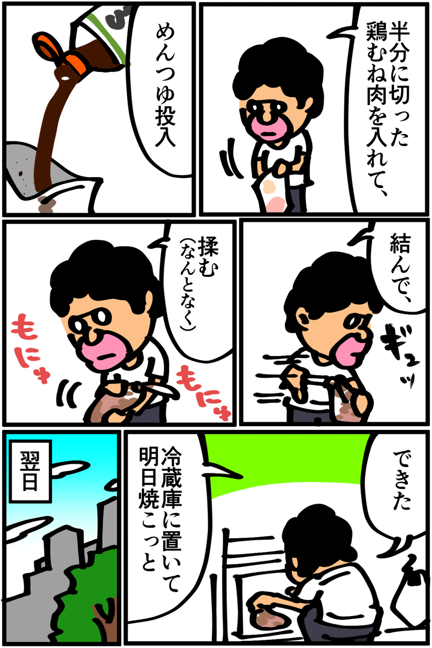 鶏むね肉、砂糖と塩を小さじ1ずつと水100ccを混ぜた魔法の水で丈夫袋に一晩寝かし、レンジで表裏2〜3分でしっとり美味しいでふよ!