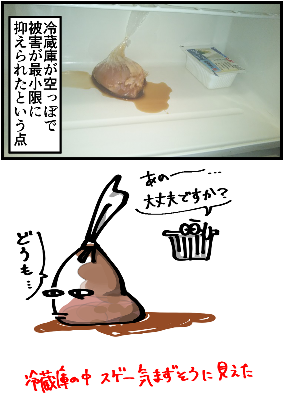 スッカラカンな冷蔵庫の数少ない利点が活きました。