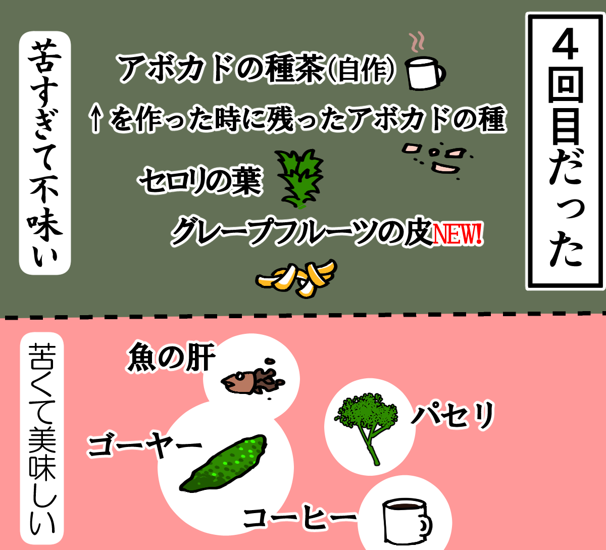 第561話「グレープフルーツの皮を食べる」 2020年10月22日 家賃3万円の6帖アパートでカツカツな生活を送る男の漫画ブログです。金が底を尽きてくたばるようなことがなければ毎日更新していきます。昨日の記事で言った通りですが、故障して修理に出していたPCが無事に治って帰ってきました。帰ってきて一発目が皮食う記事ですみません。アボカドの種茶を作ったときの話↓ ●Twitterやってます。●登録していただくと更新通知がLINEで届きます↓ 「絵日記」カテゴリの最新記事 「料理」カテゴリの最新記事 < 前の記事次の記事 > コメント コメント一覧 (18) 1. スズメ 2020年10月22日 22:20 相変わらずの食への探究心素敵です 0 taikutsu_ken がしました 2. なめこ 2020年10月22日 22:24 なぜやろうと思う😒 0 taikutsu_ken がしました 3. ひやしあめ 2020年10月22日 22:27 退屈先生の様な探求者やチャレンジャーが先人に居たからこそ今の食文化がある訳ですね…ありがたやーありがたやー 0 taikutsu_ken がしました 4. 亜土 場椅子男 2020年10月22日 22:30 果物によっては可食部でないとこが毒だったりするものもあるんで、事前に調べてからにしてくださいね ……じゃなくて食えるとこだけ食ってください(汗) 0 taikutsu_ken がしました 5. なーの 2020年10月22日 22:52 外国産の柑橘類は防カビ剤などで処理して輸入しているので皮は食べないほうが良いですね 召し上がりたいのでしたら国産のものでお試しを 0 taikutsu_ken がしました 6. ギリヂン 2020年10月22日 22:54 先生はこの先起こるであろう食糧難も平気で対応しそう。 0 taikutsu_ken がしました 7. ふう 2020年10月22日 22:55 外国産の柑橘系フルーツの皮は農薬&薬品漬けなので食べるとしたら洗剤で洗ってからの方がいいですよ 0 taikutsu_ken がしました 8. 美味 2020年10月22日 22:55 いつも果物の皮食されててその探求心素晴らしいです 冒頭でよく洗っておられるのでご存知とは思いますが、輸入果物(特に皮)はポストハーベストが心配です、程々の実食に留めるのをおすすめしたいです 0 taikutsu_ken がしました 9. 通りすがり 2020年10月22日 23:18 肌の色の血色良くなりましたね! (ただのPCとiPhoneの色彩補正差) 0 taikutsu_ken がしました 10. 手抜き主婦 2020年10月22日 23:32 平常運転ですね! それはそうと、パソコンが帰ってきてしまったら 屑山くん番外編も終わってしまうのでしょうか… (ROMだけど楽しみにしてたので) 0 taikutsu_ken がしました 11. lucy 2020年10月23日 01:49 子供の頃、婆さんが夏蜜柑の皮の砂糖漬けを天日干ししてお菓子作ってました グレフルでもできるんじゃ…? 0 taikutsu_ken がしました 12. 名無し 2020年10月23日 02:41 防カビ剤使ってるから、グレープフルーツとか輸入レモンの皮は食べちゃ駄目です。国産のレモンにして下さい! 0 taikutsu_ken がしました 13. あおい 2020年10月23日 07:01 アボカドの種は土に植えると栽培できるようなのでぜひやってみて下さい。 アボカドが収穫出来なくても十分オシャレな観葉植物として楽しめます。 0 taikutsu_ken がしました 14. 糸田Jll 2020年10月23日 07:33 勿体ない婆さんと張り合えるくらい無駄なく食材を使いますね。笑 0 taikutsu_ken がしました 15. みり子 2020年10月23日 13:37 これを残さず全部食べられたのか、すごく気になる 0 taikutsu_ken がしました 16. ふーちゃ 2020年10月23日 14:32 相変わらずですね(^^) 変なもの食べてる…… みなさんと同様、農薬とか大丈夫?!って心配してました(+_+) 安全な国産グレープフルーツの皮だったらマーマレードのようにジャムにすれば食べられたり……しないかな?? 不味いままかな? 0 taikutsu_ken がしました 17. みどり 2020年10月24日 01:29 あれ?セロリの葉って、そっちいきます? 機会があったらもう一度トライしてほしいです。 0 taikutsu_ken がしました 18. はるきち 2020年10月25日 22:29 個人的にアイビス絵の色合いがめっちゃ好きだったから定期的にみたいのです 0 taikutsu_ken がしました コメントフォーム 名前 コメント 記事の評価 リセット リセット 顔 星 情報を記憶 コメントを投稿する