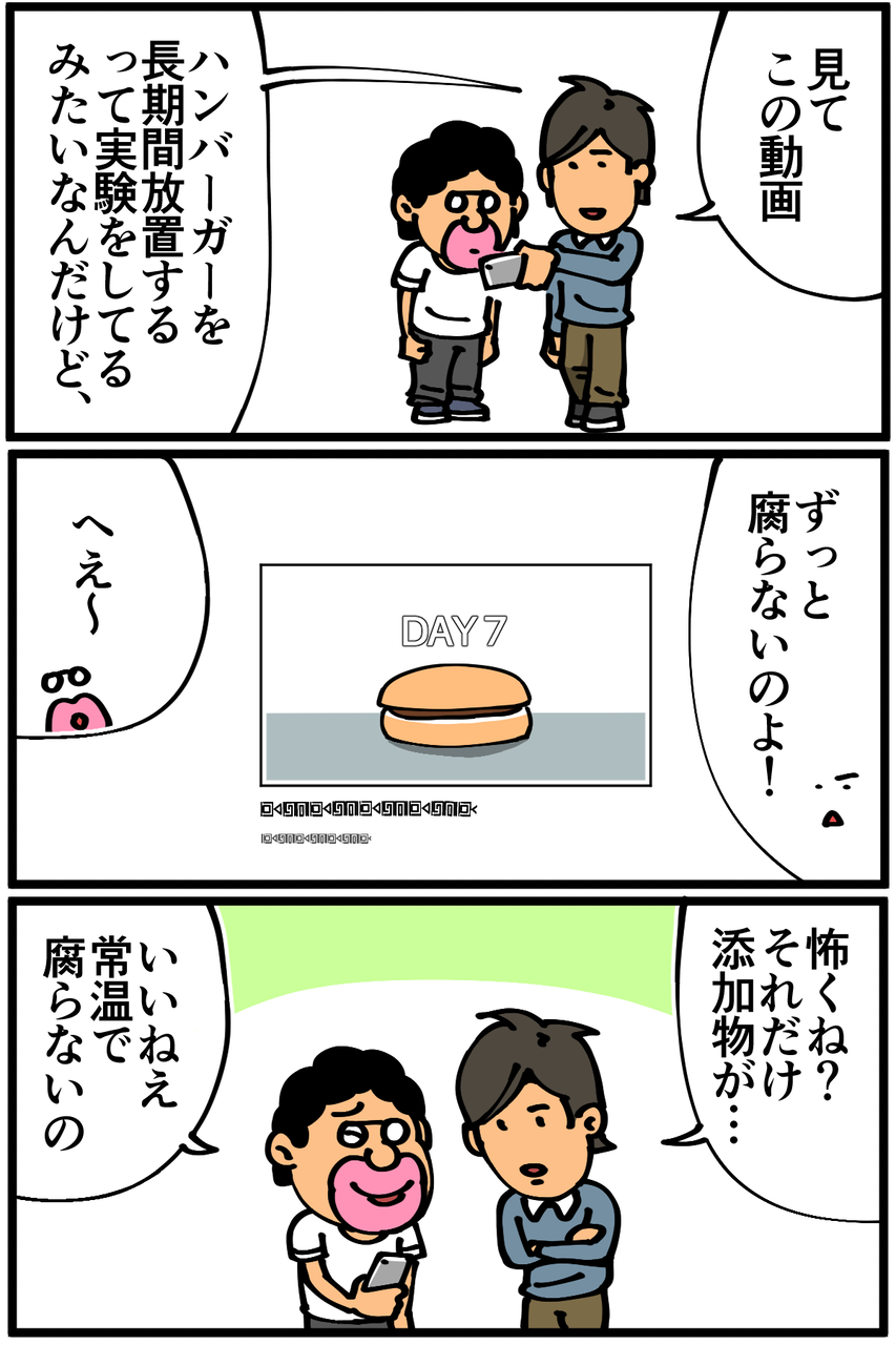 第562話「ズレていく感覚」 2020年10月23日 家賃3万円の6帖アパートでカツカツな生活を送る男の漫画ブログです。金が底を尽きてくたばるようなことがなければ毎日更新していきます。同じ値段で米が多いのは当たりじゃないのか!そういうことじゃないのか。●Twitterやってます。●登録していただくと更新通知がLINEで届きます↓ 「絵日記」カテゴリの最新記事 < 前の記事次の記事 > コメント コメント一覧 (11) 1. なめこ 2020年10月23日 22:32 先生の友達さんもなかなかユニークですよね。 0 taikutsu_ken がしました 2. 手抜き主婦 2020年10月23日 22:37 わかります。 先生の場合そうだよね!ってのが 0 taikutsu_ken がしました 3. スズメ 2020年10月23日 22:39 寿司はきっと大将のこだわりだと思いたいですね… 0 taikutsu_ken がしました 4. 糸田J 2020年10月23日 22:39 典型的な質より量思考。笑 0 taikutsu_ken がしました 5. aaaaaaaaaaaa 2020年10月23日 22:45 ハンバーガーの動画ってTemponaut Timelapse? 0 taikutsu_ken がしました 6. ギリヂン 2020年10月23日 22:48 寿司の件はまだ好みの問題もありますが、 長期間放置されたハンバーガーは流石に食べないでwww 0 taikutsu_ken がしました 7. ななし 2020年10月23日 22:48 高級なお寿司はシャリ少なめらしいですよ! お友達はそれなりにお値段がするお寿司を食べてるのでしょうか? 0 taikutsu_ken がしました 8. スーパーのサーモン寿司で満足な貧乏舌 2020年10月23日 23:05 おおむね下記の認識でいいと思います。 シャリが大きいと早くお腹いっぱいになってしまうというのもあると思います。 激安寿司:ネタが薄く小さくシャリがでかい 高級寿司:ネタが厚く大きくシャリが小さい (回転寿司とかスーパーのお寿司はこの中間) 0 taikutsu_ken がしました 9. 匿名 2020年10月23日 23:36 退屈さんと意見合っちゃったので、滝に打たれて心頭滅却してきます。 0 taikutsu_ken がしました 10. カットマン 2020年10月24日 01:08 子供の頃、自分家では常識だと思っていた事が お隣さんの家、友達の家では全然常識ではなかったりします。 常識というのは、意外と簡単にズレてしまうものなんです。 0 taikutsu_ken がしました 11. へく 2020年10月25日 10:01 ちなみにハンバーガーが腐らないのは添加物じゃなくて水分の少なさと塩分が原因 まあ塩分は体に悪いから「塩化ナトリウムという添加物が原因です!」とも言えるけどねw 0 taikutsu_ken がしました コメントフォーム 名前 コメント 記事の評価 リセット リセット 顔 星 情報を記憶 コメントを投稿する
