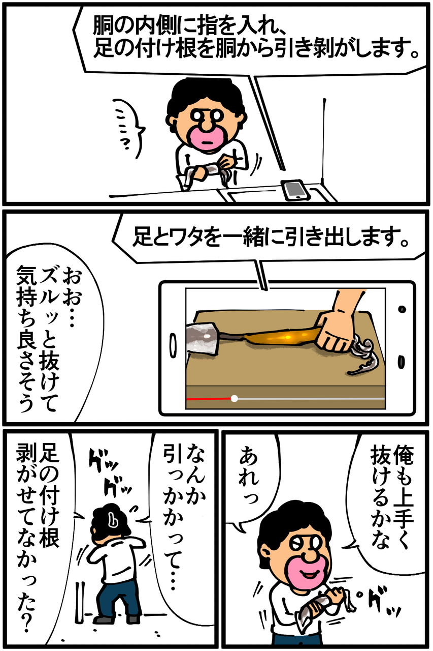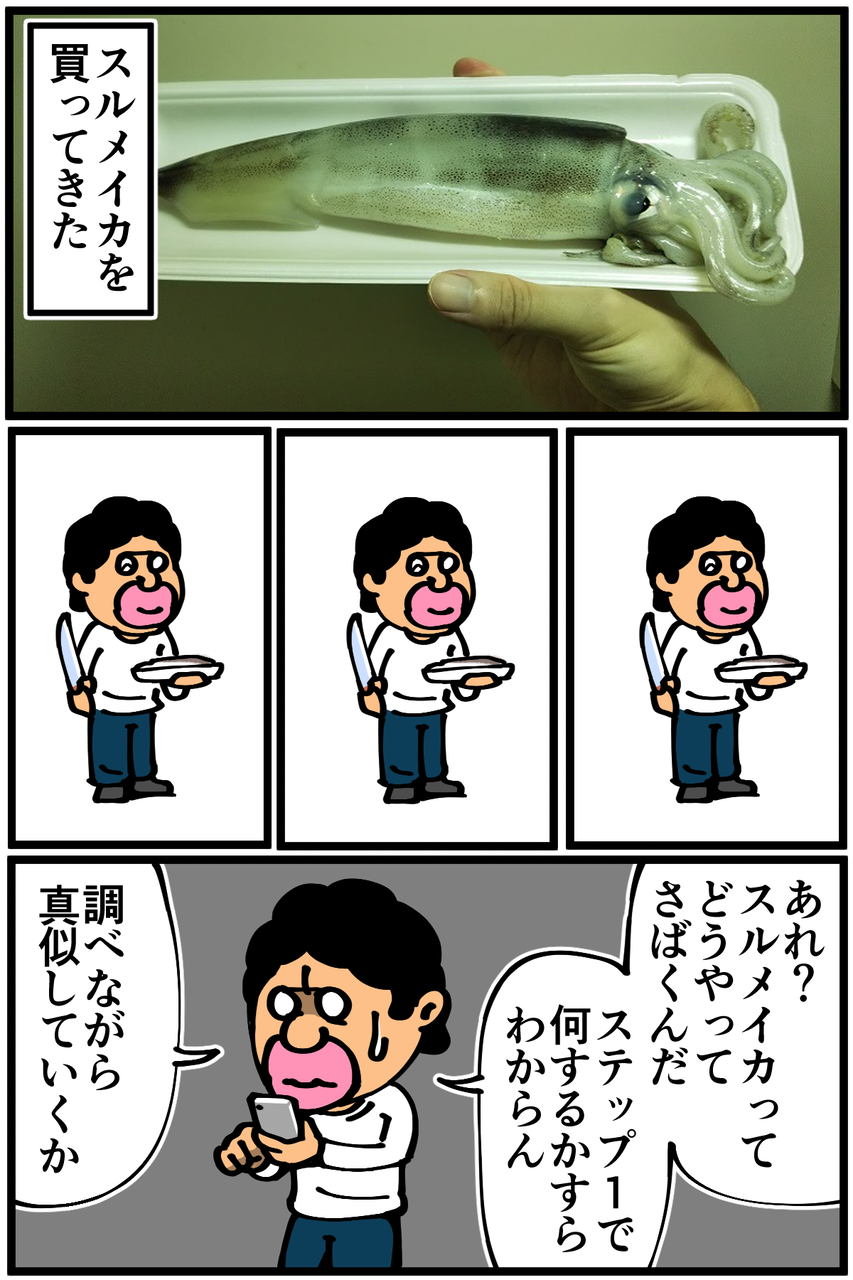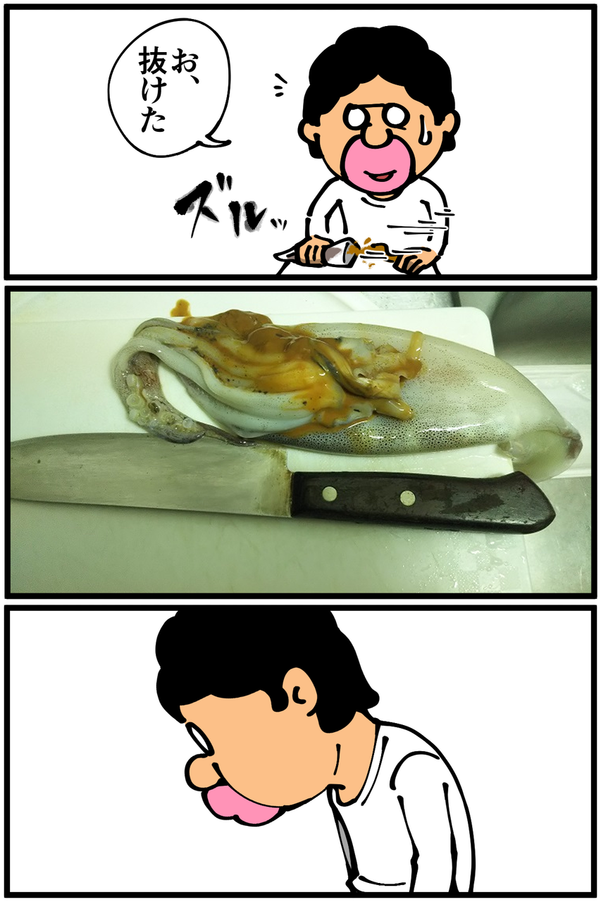 第586話「スルメイカをさばく・前編」 2020年11月21日 家賃3万円の6帖アパートでカツカツな生活を送る男の漫画ブログです。金が底を尽きてくたばるようなことがなければ毎日更新します。後編に続きます。続き→ ●Twitterやってます。●登録していただくと更新通知がLINEで届きます↓ 「絵日記」カテゴリの最新記事 「料理」カテゴリの最新記事 < 前の記事次の記事 > コメント コメント一覧 (14) 1. さつまりこ 2020年11月21日 20:33 私も今日偶然にも新鮮なイカを手に入れたので捌きました!内蔵をうまくとるのと皮を剥がすのが難しいですが慣れると簡単です(*^^*)腑と一緒に炒めるとめちゃくちゃ美味しいですよ~ 0 taikutsu_ken がしました 7. 退屈健 2020年11月22日 22:49 >>1 内臓も皮も難しくて失敗してしまいました!笑 肝と一緒に炒めるべきだったんですね!取り出してそのまま廃棄してしまいました、もったいないことをしてしまった…! 0 taikutsu_ken がしました 2. ぬ 2020年11月21日 20:36 その考え方 好きです 0 taikutsu_ken がしました 8. 退屈健 2020年11月22日 22:50 >>2 ありがとうございます!笑 0 taikutsu_ken がしました 3. なめこ 2020年11月21日 21:12 さすがは脳を騙してカレーと思い込ませようとした男‼️ ナマコは内臓をはきだせますから、これはナマコだと思い込みましょう😁 0 taikutsu_ken がしました 9. 退屈健 2020年11月22日 22:50 >>3 ナマコ!そんな特性があったんですね…! 0 taikutsu_ken がしました 4. 昼寝部 2020年11月21日 21:42 こりゃ、"イカ"んなw 0 taikutsu_ken がしました 10. 退屈健 2020年11月22日 22:51 >>4 ま、いイカな 0 taikutsu_ken がしました 5. みり子 2020年11月21日 22:41 先生ならそのまま輪切りにしてくれると信じていました。残念ですw 0 taikutsu_ken がしました 11. 退屈健 2020年11月22日 22:51 >>5 それもチラッと頭をよぎりました!笑 0 taikutsu_ken がしました 6. 名無し 2020年11月22日 00:48 塩辛大好き 0 taikutsu_ken がしました 12. 退屈健 2020年11月22日 22:51 >>6 塩辛美味しいですよね~!ビールが欲しくなる…! 0 taikutsu_ken がしました 13. かんかんか 2020年11月26日 03:04 流石に生では食べてないですよね? 0 taikutsu_ken がしました 14. 退屈健 2020年11月27日 14:22 >>13 さすがに生は断念しました!笑 0 taikutsu_ken がしました コメントフォーム 名前 コメント 記事の評価 リセット リセット 顔 星 情報を記憶 コメントを投稿する