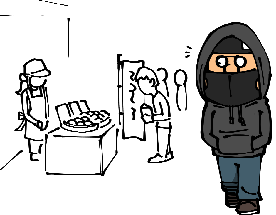 マスクに加えニット帽だったりフードだったりとどこからどう見ても怪しいパーフェクト不審者スタイルだったため、用件を伺う前に職質だなとわかりました。