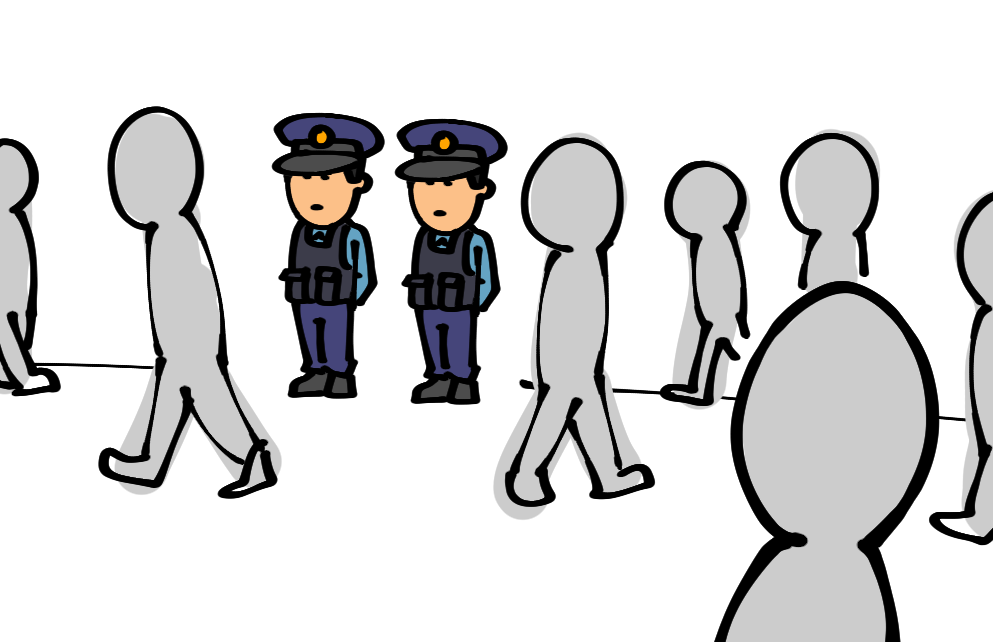 警察官の方2人に呼び止められました(警察官の方の具体的な服装は忘れてしまった…)。