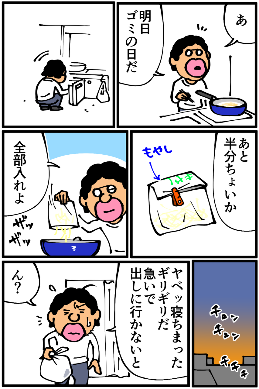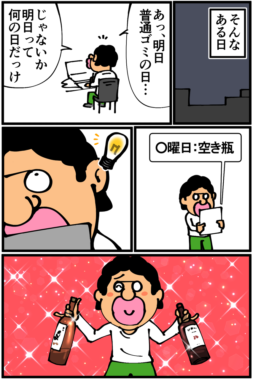 第597話「ゴミの日に振り回される食生活」 2020年12月04日 家賃3万円の6帖アパートでカツカツな生活を送る男の漫画ブログです。金が底を尽きてくたばるようなことがなければ毎日更新します。キッチンにずっと放置してた開栓済みの日本酒とワイン、この機会に空けちゃいましょうかねと飲み始めたら予想以上に残ってて一人でダウンしてました。洗い物を増やしたくなくてコップも使わず飲んだので、謎に一人で飲みサーみたいな飲み方してました。そういえば俺酒弱いんだった!●Twitterやってます。●登録していただくと更新通知がLINEで届きます↓ 「絵日記」カテゴリの最新記事 < 前の記事次の記事 > コメント コメント一覧 (27) 1. あ〜る 2020年12月04日 23:06 >キッチンにずっと放置してた開栓済みの あっ… 0 taikutsu_ken がしました 13. 退屈健 2020年12月05日 14:32 >>1 あっ…!! 0 taikutsu_ken がしました 2. 退屈な名無しさん 2020年12月04日 23:06 先生のブログ日に日に面白くて好きです 0 taikutsu_ken がしました 14. 退屈健 2020年12月05日 14:32 >>2 本当ですかありがとうございます!;; 0 taikutsu_ken がしました 3. う〜 2020年12月04日 23:08 もやしの賞味期限に加えてゴミの日にも踊らされる退屈先生 0 taikutsu_ken がしました 15. 退屈健 2020年12月05日 14:33 >>3 もやしとゴミに生活を支配されてます!笑 0 taikutsu_ken がしました 4. おるにちん 2020年12月04日 23:09 どうぞお大事に(;人;) 0 taikutsu_ken がしました 16. 退屈健 2020年12月05日 14:33 >>4 ありがとうございます! 0 taikutsu_ken がしました 5. なめこ 2020年12月04日 23:15 読んだ瞬間に『アホですかアンタは』と思った私を許して下さいm(_ _)m 0 taikutsu_ken がしました 17. 退屈健 2020年12月05日 14:33 >>5 アホそのものです!笑 0 taikutsu_ken がしました 6. 無名 2020年12月04日 23:47 不味すぎて吐いたのかと 0 taikutsu_ken がしました 18. 退屈健 2020年12月05日 14:33 >>6 味は美味しかったです!笑 0 taikutsu_ken がしました 7. ななし 2020年12月04日 23:48 わかります〜 これも捨てれる!あれも!それも!みたいな笑 0 taikutsu_ken がしました 19. 退屈健 2020年12月05日 14:33 >>7 捨てられるものは一気にまとめて捨てたいですよね!笑 0 taikutsu_ken がしました 8. 鯛 2020年12月05日 00:01 ワインと日本酒のちゃんぽんは悪酔いしやすいから気を付けて! 0 taikutsu_ken がしました 20. 退屈健 2020年12月05日 14:34 >>8 おおお、そうだったんですか…!気を付けます! 0 taikutsu_ken がしました 9. 根っからの福岡市民 2020年12月05日 01:03 そもそもゴミ回収が朝なことに驚く… そっか…ドラマとかでも朝出かける際に持って出る!だもんなぁ 0 taikutsu_ken がしました 21. 退屈健 2020年12月05日 14:34 >>9 調べたら福岡は夜間回収なんですね!!もし今そちらに引っ越したら朝出そうとして困惑しそうです!笑 0 taikutsu_ken がしました 10. ぁぶぅ 2020年12月05日 07:21 わかります😊 そして‥そのゴミだけ出し忘れとかも有る ヽ( ̄д ̄;)ノ=3=3=3 いつも楽しみにしています 0 taikutsu_ken がしました 22. 退屈健 2020年12月05日 14:35 >>10 ありがとうございます! 結局出し忘れちゃうのはあるあるですね!笑 0 taikutsu_ken がしました 11. シュフ 2020年12月05日 07:24 ゴミ出しに踊らされるの、分かるっ!笑 お酒飲もうってルンルンしてる後の、最後のコマのエモさが絵画レベルですね。 先生の漫画センスほんと好き!! 0 taikutsu_ken がしました 23. 退屈健 2020年12月05日 14:35 >>11 とんでもないです、ありがとうございます!嬉しい限りです;; 0 taikutsu_ken がしました 12. kyakya 2020年12月05日 09:44 お酒強くないなら 二本いっぺんにじゃなくて 一本ずつ飲めばよかったのに… もしくは無理して捨てずに 料理に少しずつ使うとか… 0 taikutsu_ken がしました 24. 退屈健 2020年12月05日 14:36 >>12 あっ!確かに料理に使うべきでした…! 0 taikutsu_ken がしました 25. 126 2020年12月06日 11:03 ひとりのみさーww 0 taikutsu_ken がしました 26. 退屈健 2020年12月06日 22:51 >>25 なぜか自分で自分にコールしてました!笑 0 taikutsu_ken がしました 27. ARATAYO 2022年05月04日 03:25 ご飯作ってあげたい 掃除してあげたい うちにすみませんか? 0 taikutsu_ken がしました コメントフォーム 名前 コメント 記事の評価 リセット リセット 顔 星 情報を記憶 コメントを投稿する
