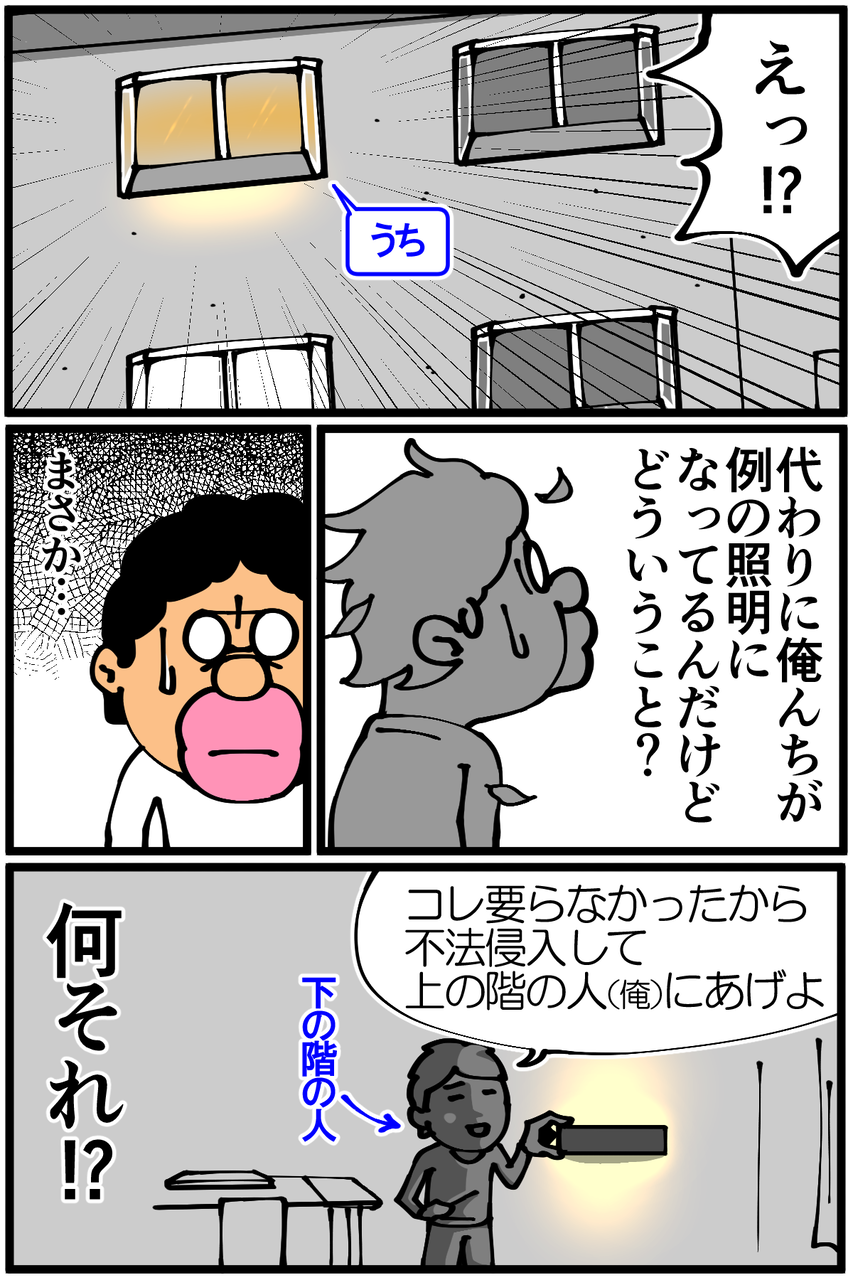 第642話「流行りの照明・後編」 2021年01月25日 家賃3万円の6帖アパートでカツカツな生活を送る男の漫画ブログです。金が底を尽きてくたばるようなことがなければ毎日更新します。前回の記事 の続きです。ただのキッチンの灯りでした。意味不明な勘違いを2話にも分けてすみません。●Twitterやってます。●登録していただくと更新通知がLINEで届きます↓ 「絵日記」カテゴリの最新記事 < 前の記事次の記事 > コメント コメント一覧 (31) 1. スズメ 2021年01月25日 23:13 ある種のイルミネーション…? 0 taikutsu_ken がしました 14. 退屈健 2021年01月26日 22:00 >>1 家を出て10秒で見られるイルミネーションですね!笑 0 taikutsu_ken がしました 2. なめこ 2021年01月25日 23:18 素直な人っていいと思う。 うん(^_^;) 0 taikutsu_ken がしました 15. 退屈健 2021年01月26日 22:02 >>2 俺の場合は素直と言うかバカなだけです!笑 0 taikutsu_ken がしました 3. パクじ 2021年01月25日 23:22 アパート内で仲間はずれにされたわけじゃなくて良かった😂 0 taikutsu_ken がしました 16. 退屈健 2021年01月26日 22:03 >>3 俺以外の住民は日常的に交流しているのかと思いました!笑 0 taikutsu_ken がしました 4. プンバ 2021年01月25日 23:24 なるほろー!!仕組み?が分かるとスッキリしました。 他の住居者の方も同じような事を思われていたりするかも?!ですね! 0 taikutsu_ken がしました 17. 退屈健 2021年01月26日 22:07 >>4 もしかしたら俺に対しても「不法侵入か?」と思われているかもですね!笑 0 taikutsu_ken がしました 5. ごはん 2021年01月25日 23:25 下の階の人が不法侵入した説には爆笑しました。まさかの発想… 0 taikutsu_ken がしました 18. 退屈健 2021年01月26日 22:07 >>5 ワケわからない発想に至ってしまいました!笑 0 taikutsu_ken がしました 6. キッチン 2021年01月25日 23:51 これからはいい雰囲気で素パスタ食べれますね 0 taikutsu_ken がしました 19. 退屈健 2021年01月26日 22:08 >>6 ムーディーな素パスタを堪能します!笑 0 taikutsu_ken がしました 7. ペドロ 2021年01月25日 23:55 アパートは、今日も平和です 0 taikutsu_ken がしました 20. 退屈健 2021年01月26日 22:09 >>7 今日も今日とて平和なアパートでした!笑 0 taikutsu_ken がしました 8. きなこ 2021年01月26日 00:09 いや、分かりますとも‼️ 自分の中では大変な出来事ですよ。 勘違いでも些細なことで一方的な連帯感を感じることありますとも。 0 taikutsu_ken がしました 21. 退屈健 2021年01月26日 22:10 >>8 一人で勝手にアレコレ考えてしまっていました!笑 0 taikutsu_ken がしました 9. かほ 2021年01月26日 07:40 おはようございます! 昨日、オチを先取りしてしまいました😂 ごめんなさいー! でも、不法侵入はめっちゃわらいました笑 0 taikutsu_ken がしました 22. 退屈健 2021年01月26日 22:11 >>9 いえいえとんでもないです~!! くれたのか!?と謎の推測をしてしまいました!笑 0 taikutsu_ken がしました 10. 以下、名無し 2021年01月26日 09:31 他人の家の明かりとかきにしたことなかったなぁ。 自分の職場は蛍光灯がそれぞれ白昼色だったり電球色だったりするから部屋の明かりがちぐはぐで・・・ 0 taikutsu_ken がしました 24. 退屈健 2021年01月26日 22:13 >>10 外階段を上る前にちょうど目の前に窓が来るということもあって謎に照明チェックしてしまいました!笑 0 taikutsu_ken がしました 11. たば 2021年01月26日 13:00 という事は部屋の電気は消してキッチンの明かりを付けて間仕切りカーテンを開けて過ごせば先生の部屋もオシャレ部屋になりますね! 0 taikutsu_ken がしました 25. 退屈健 2021年01月26日 22:13 >>11 オシャレ部屋で食べる素パスタは格別ですね! 0 taikutsu_ken がしました 12. むむむ 2021年01月26日 20:29 ふふふ、どーでもよくてわろた(笑) 0 taikutsu_ken がしました 26. 退屈健 2021年01月26日 22:14 >>12 前後編に分けた物凄くどうでもいい話でした!笑 0 taikutsu_ken がしました 13. ぱいぱい 2021年01月26日 21:31 という事は、うちは毎日間接照明になりますね! おしゃれ部屋の仲間入り!! 0 taikutsu_ken がしました 27. 退屈健 2021年01月26日 22:14 >>13 良い雰囲気のオシャレ部屋ですね!笑 0 taikutsu_ken がしました 23. ふーみー 2021年01月26日 22:11 これからは間接照明として使えますね😃 一人じゃない時に…(笑) 0 taikutsu_ken がしました 28. 退屈健 2021年01月26日 22:14 >>23 一人じゃない時が無いという問題点が…!笑 0 taikutsu_ken がしました 29. mai 2021年01月26日 22:33 全然マンガの内容とは関係無いコメントですが言わせてください。 このブログ…… やっと見つけましたー! 間違ってラインを削除したら登録してたブログも全て無くなってしまい、 探そうにも失礼ながらタイトルとかお名前とか覚えておらず…… 絵の感じしか覚えてないのでそれをヒントに色々検索かけまくって、 結局引っかかったのは 『家賃3万 マンガブログ』 でした(笑) 家賃覚えてて良かったー!! 0 taikutsu_ken がしました 30. gohan 2021年01月27日 11:32 >>29 私は「退屈」という言葉だけ覚えていたので、退屈ブログで一発でした 0 taikutsu_ken がしました 31. 退屈健 2021年01月27日 20:51 >>29 おおお、また読んでいただけて幸いです!! 3万円