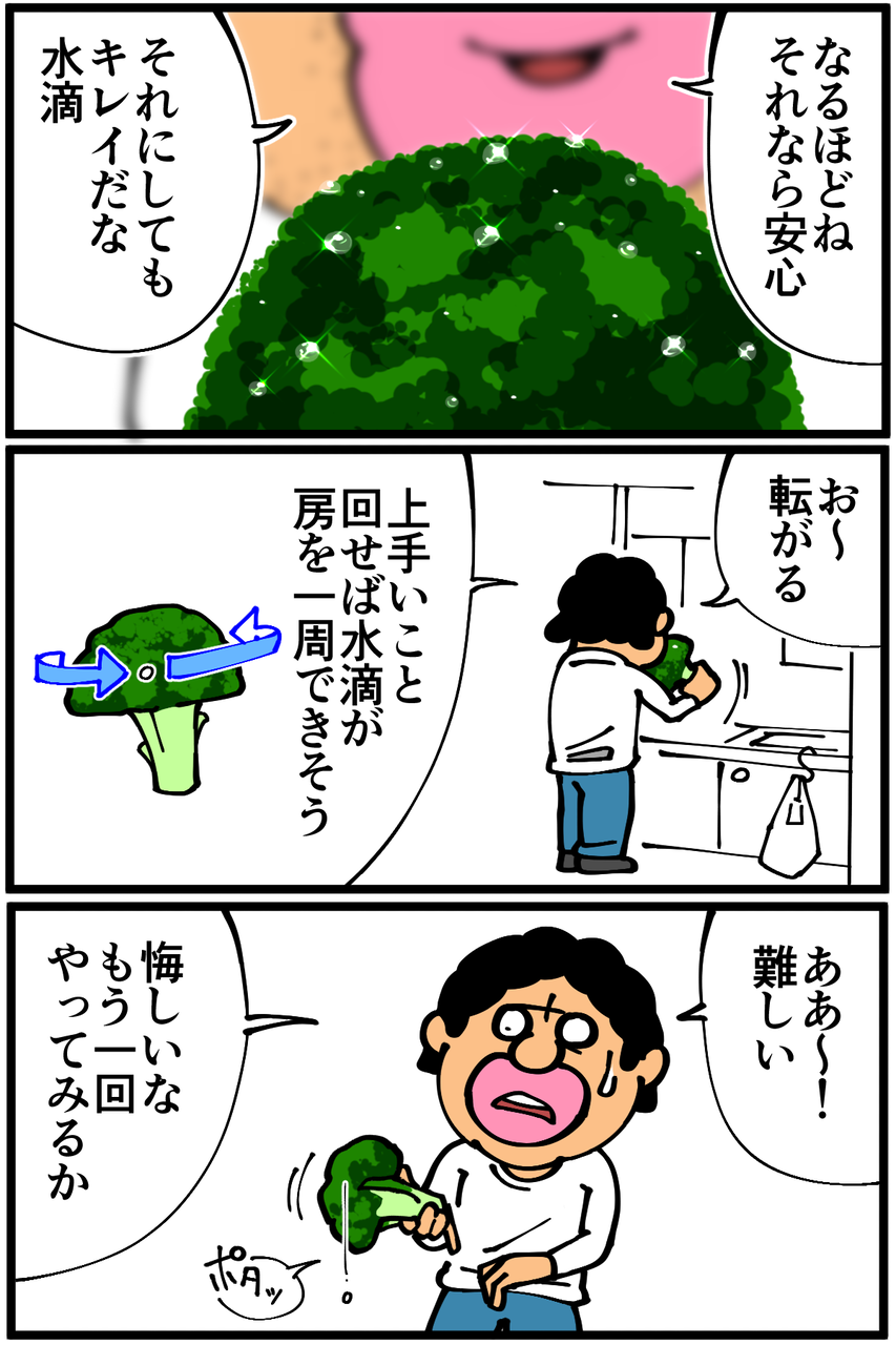 第661話「ブロッコリーが水をはじく理由」 2021年02月14日 家賃3万円の6帖アパートでカツカツな生活を送る男の漫画ブログです。金が底を尽きてくたばるようなことがなければ毎日更新します。「チョコ0個で落ち込む」というのが例年のバレンタインだったんですが、ついに「バレンタインだと気付かずにブロッコリーの水滴で遊び始める」という最終進化形に行き着いてしまいました。去年のバレンタインは自分用のワケわからないチョコを作ってました。これはこれでおかしい↓ ●Twitterやってます。●登録していただくと更新通知がLINEで届きます↓ 「絵日記」カテゴリの最新記事 < 前の記事次の記事 > コメント コメント一覧 (44) 1. マーシー 2021年02月14日 20:49 ブロッコリーにはなにもつけずに食べるのですか? 0 taikutsu_ken がしました 23. 退屈健 2021年02月15日 20:55 >>1 今回は塩胡椒にしました! 0 taikutsu_ken がしました 2. あ〜る 2021年02月14日 20:51 チョコがなければブロッコリーを食べればいいじゃない🥦(錯乱) 0 taikutsu_ken がしました 24. 退屈健 2021年02月15日 20:55 >>2 名言ですね!(錯乱) 0 taikutsu_ken がしました 3. めい 2021年02月14日 20:51 ハイッ!とゆう気合いがめっちゃ可愛いです😂 0 taikutsu_ken がしました 25. 退屈健 2021年02月15日 20:55 >>3 無駄に気合い入れました!笑 0 taikutsu_ken がしました 4. ごみむしまん 2021年02月14日 20:52 バレンタインという若い男女が甘酸っぱい思い出を作る日の中 部屋で一人孤独にブロッコリーの新しい遊び方を確立する先生の勇姿に感涙致しました 0 taikutsu_ken がしました 26. 退屈健 2021年02月15日 20:56 >>4 よりによってこんな日に新たな遊び方を開発してしまいました!笑 0 taikutsu_ken がしました 5. パクじ 2021年02月14日 20:53 最終進化形w 来年はチョコをゲットするしかないですね✨ 0 taikutsu_ken がしました 27. 退屈健 2021年02月15日 20:57 >>5 来年こそはゲットします!自分から自分へ以外で!笑 0 taikutsu_ken がしました 6. ちくわ 2021年02月14日 20:58 ブロッコリーのキレイな水滴と奥にあるデカい唇のギャップで笑っちゃった 0 taikutsu_ken がしました 28. 退屈健 2021年02月15日 20:57 >>6 キレイさが台無しですね!笑 0 taikutsu_ken がしました 7. レオ 2021年02月14日 21:01 全人類探してもそんなバレンタインの過ごし方するのは先生くらいかと思いますwww 最高です!!! 0 taikutsu_ken がしました 29. 退屈健 2021年02月15日 20:57 >>7 人類史においても初の可能性すらありますね!笑 0 taikutsu_ken がしました 8. ひまわり 2021年02月14日 21:25 このバレンタインの日に退屈な私は、退屈先生のブログを最初から読み直しましたよ(笑) 袋入りの大福は、開封前に袋の上から包丁で押し切りにしてひと口大に切ってから、袋の中から指かお箸でつまみながら食べてみて下さい。包丁は汚れませんよ。 口内炎、辛いですよね(涙) 『イソジンうがい液』でのぐちゅぐちゅうがいが、とてもよく効きますよ! もっと早く強力に治したい時は、私はイソジンうがい液の原液を綿棒で局所にロックオンしちゃいますが、これは自己責任でやっていますが(汗) あと、末端冷え性の対策ですが、 腕を上下に、大きく素早く数回振ることで、遠心力により体幹の温かい血液を指先に送ることができ、指先のかじかみは改善されるようです。災害時寒い中で細かい作業や携帯電話を操作する際に役立ちます。 私の親愛なる退屈先生、いかがでしょうか? 0 taikutsu_ken がしました 30. 退屈健 2021年02月15日 20:58 >>8 おおおお、読んでいただけて光栄です!しかもめちゃくちゃためになるアドバイスをこんなにも!!!感謝の限りです! 0 taikutsu_ken がしました 9. ななひ 2021年02月14日 21:48 その遊びやったことあります…パクられたのかと思いました(?) 手首はどう頑張っても180°しか回らんのでなかなか大変なんす🙄 0 taikutsu_ken がしました 31. 退屈健 2021年02月15日 20:59 >>9 なかなか熱中できる遊びですよね!笑 0 taikutsu_ken がしました 10. スズメ 2021年02月14日 22:05 チョコより美味しいですしブロッコリー 0 taikutsu_ken がしました 32. 退屈健 2021年02月15日 21:00 >>10 甲乙つけがたいところです!笑 0 taikutsu_ken がしました 11. なめこ 2021年02月14日 22:19 チョコをかじって差し歯が取れたので、食わないで正解かもしれないですよ( ;∀;) 0 taikutsu_ken がしました 33. 退屈健 2021年02月15日 21:00 >>11 おお、それは怖い!ブロッコリーで正解ということにします!笑 0 taikutsu_ken がしました 12. かわ 2021年02月14日 22:33 ブロッコリー1つでバレンタインを忘れるぐらい時間を潰せるのも才能…? 0 taikutsu_ken がしました 34. 退屈健 2021年02月15日 21:01 >>12 バレンタインを忘れてしまう状況自体が悲しみですね!笑 0 taikutsu_ken がしました 13. おはぎ 2021年02月14日 22:33 先生にチョコをプレゼントしたい!! ブロッコリー茹でる前にしっかり水につけてくださいね!虫が間に潜んでいる事もあるみたいですので… 0 taikutsu_ken がしました 35. 退屈健 2021年02月15日 21:01 >>13 ありがとうございます、そのお気持ちで十分ありがたいです~! 虫が潜んでるケース怖いですね…! 0 taikutsu_ken 