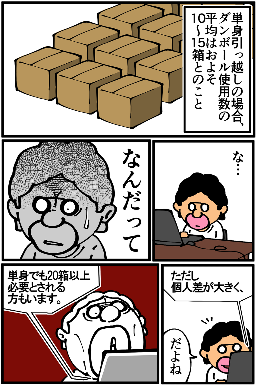 むしろ物が多すぎて25箱ぐらい使います……