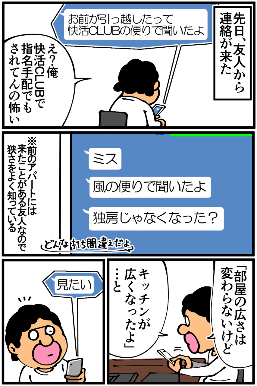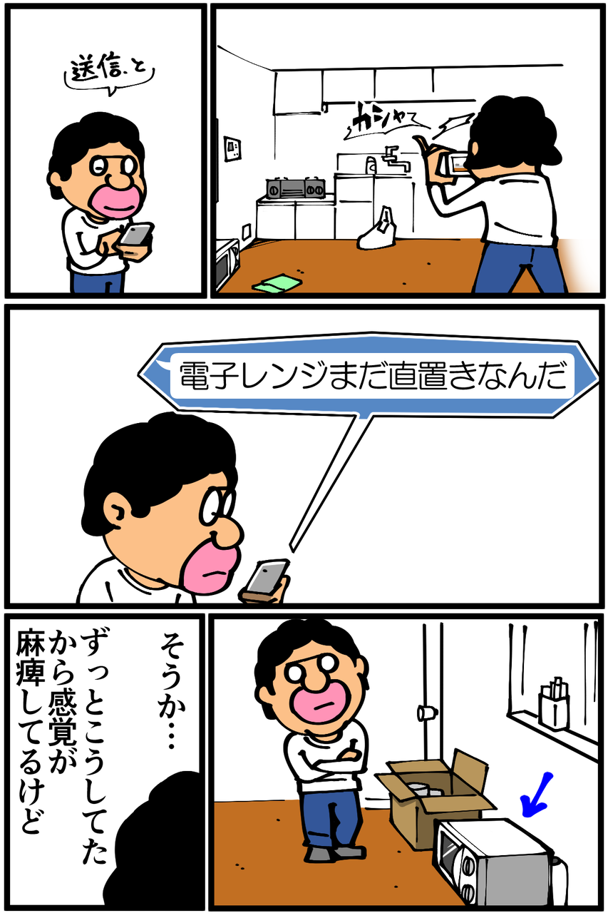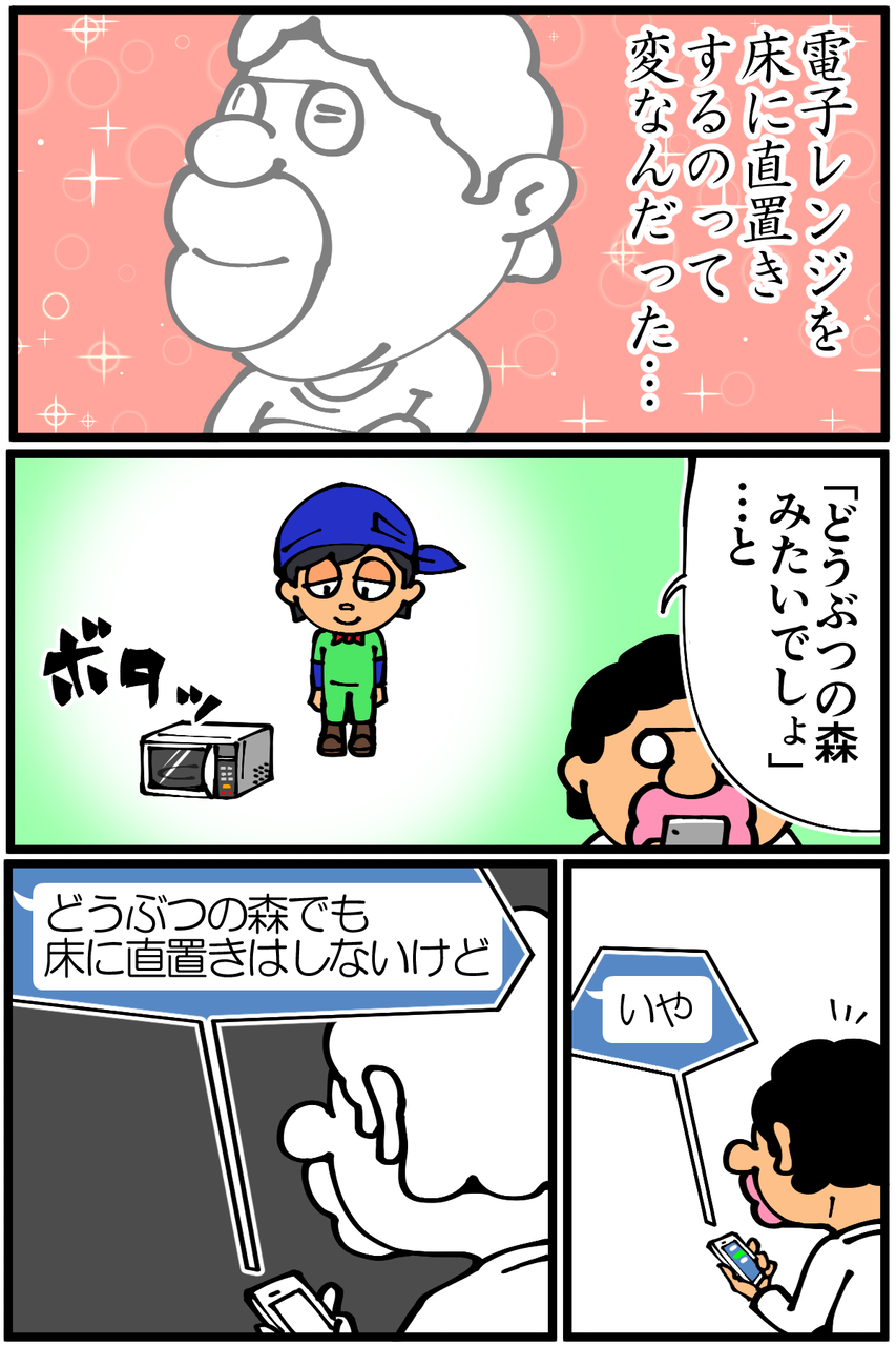 第719話「電子レンジの直置き」 2021年04月22日 安アパートでカツカツな生活を送る男の漫画ブログです。金が底を尽きてくたばるようなことがなければ毎日更新します。俺のせいでどうぶつの森の主人公までもが奇人になってしまっているのが不憫でならない。ちなみにスマブラでも俺が操作するとどんなキャラでも不審者っぽくなります。過去に受けた友人からの指摘↓●Twitterやってます。●登録していただくと更新通知がLINEで届きます↓ 「絵日記」カテゴリの最新記事 < 前の記事次の記事 > コメント コメント一覧 (29) 1. FirstName LastName 2021年04月22日 22:31 あれ、どうぶつの森で直置きできなかったっけ……あつ森ではできないのかな? 0 taikutsu_ken がしました 7. ミオ 2021年04月22日 22:46 >>1 直置きはできますが、ゲーム内でも棚やテーブルの上に置くのが普通という意味だと思います 0 taikutsu_ken がしました 15. 退屈健 2021年04月23日 22:04 >>1 あつ森でも家具の直置きできますよ~! 0 taikutsu_ken がしました 29. FirstName LastName 2021年05月04日 23:08 >>7 >>15 そういうことか! 意味汲み取れてなかった……! 返信ありがとうございます! 0 taikutsu_ken がしました 2. はるきち 2021年04月22日 22:32 快活CLUBで指名手配はウケるw 冷蔵庫の上に今は置いてる感じですかねぇ…… 諸事情でレンジ床置きを3日ぐらいしましたがめちゃくちゃ使いにくくて先生すげぇ!となりました 0 taikutsu_ken がしました 16. 退屈健 2021年04月23日 22:04 >>2 冷蔵庫の上いいですね!俺はむしろ床の高さに慣れてしまいました、不便なはずなのに…!笑 0 taikutsu_ken がしました 3. なめこ 2021年04月22日 22:35 使いにくいですから、普通はしませんねぇ。 0 taikutsu_ken がしました 17. 退屈健 2021年04月23日 22:05 >>3 毎回腰が痛いです!笑 0 taikutsu_ken がしました 4. アレックス・オックスレイド=チェンバレン 2021年04月22日 22:36 快活CLUBの頼りw 0 taikutsu_ken がしました 18. 退屈健 2021年04月23日 22:05 >>4 指名手配されてるのかと焦りました!笑 0 taikutsu_ken がしました 5. ぼっち 2021年04月22日 22:41 先生お友達多いですよね 0 taikutsu_ken がしました 19. 退屈健 2021年04月23日 22:05 >>5 実は同じ友人が何度も出ているので人数はめちゃくちゃ少ないです! 0 taikutsu_ken がしました 6. か 2021年04月22日 22:45 私はレンジの直置きしてますねえ。足で扉を閉めるようになってきますよね。 0 taikutsu_ken がしました 20. 退屈健 2021年04月23日 22:06 >>6 足で閉めるのにちょうどいい高さですね!笑 0 taikutsu_ken がしました 8. むむむ 2021年04月22日 22:56 唐突の快活CLUB(笑) よく行くので、そんな便り?お知らせあるんだーって一瞬思っちゃいました(笑) 0 taikutsu_ken がしました 21. 退屈健 2021年04月23日 22:06 >>8 よくわからんオッサンの引っ越し情報まで共有する怖いお便りになってしまいますね!笑 0 taikutsu_ken がしました 9. みり子 2021年04月22日 22:57 冷蔵庫で着替えをさせられるあつ森なら、床直置きだろうが何だろうが何でもアリですよねw 0 taikutsu_ken がしました 22. 退屈健 2021年04月23日 22:07 >>9 冷蔵庫で着替えようかな?には最初焦りました!笑 0 taikutsu_ken がしました 10. Nnnn 2021年04月22日 23:45 そもそもどうぶつの森でキッチンある人少なくないですかね() 0 taikutsu_ken がしました 23. 退屈健 2021年04月23日 22:07 >>10 そういえば俺も作ってませんでした…!笑 0 taikutsu_ken がしました 11. めい 2021年04月22日 23:49 快活CLUB、実在するんですね🤣 0 taikutsu_ken がしました 24. 退屈健 2021年04月23日 22:07 >>11 実在しますよ~!笑 0 taikutsu_ken がしました 12. ひろけ 2021年04月23日 06:37 直置きもできますが現実に近づけるためにテーブル家具の上に置く人が多いと思います 0 taikutsu_ken がしました 26. 退屈健 2021年04月23日 22:08 >>12 考えてみると地べたに置いている人を見たことがありませんでした!笑 0 taikutsu_ken がしました 13. 柑橘類 2021年04月23日 19:05 まさに今日、どうぶつの森で電子レンジをもらい、置く場所なくて床に置いて、先生思い出しました! 0 taikutsu_ken がしました 27. 退屈健 2021年04月23日 22:08 >>13 置く場所に困ったとき、とりあえず床とか地面にボタッと放置しちゃいますよね!笑 0 taikutsu_ken がしました 14. じる 2021年04月23日 19:38 全記事読みましたー面白かったです。 「バナナの皮 レシピ」で検索すると食べ方あるらしいですよw 0 taikutsu_ken がしました 28. 退屈健 2021年04月23日 22:08 >>14 ありがとうございます、読んでいただけて嬉しい限りです! おおお、それは要チェックですね…!笑 0 taikutsu_ken がしました 25. 転勤族 2021年04月23日 22:07 電子レンジは毎回冷蔵庫の上に置いてます! 0 taikutsu_ken がしました コメントフォーム 名前 コメント 記事の評価 リセット リセット 顔 星 情報を記憶 コメントを投稿する