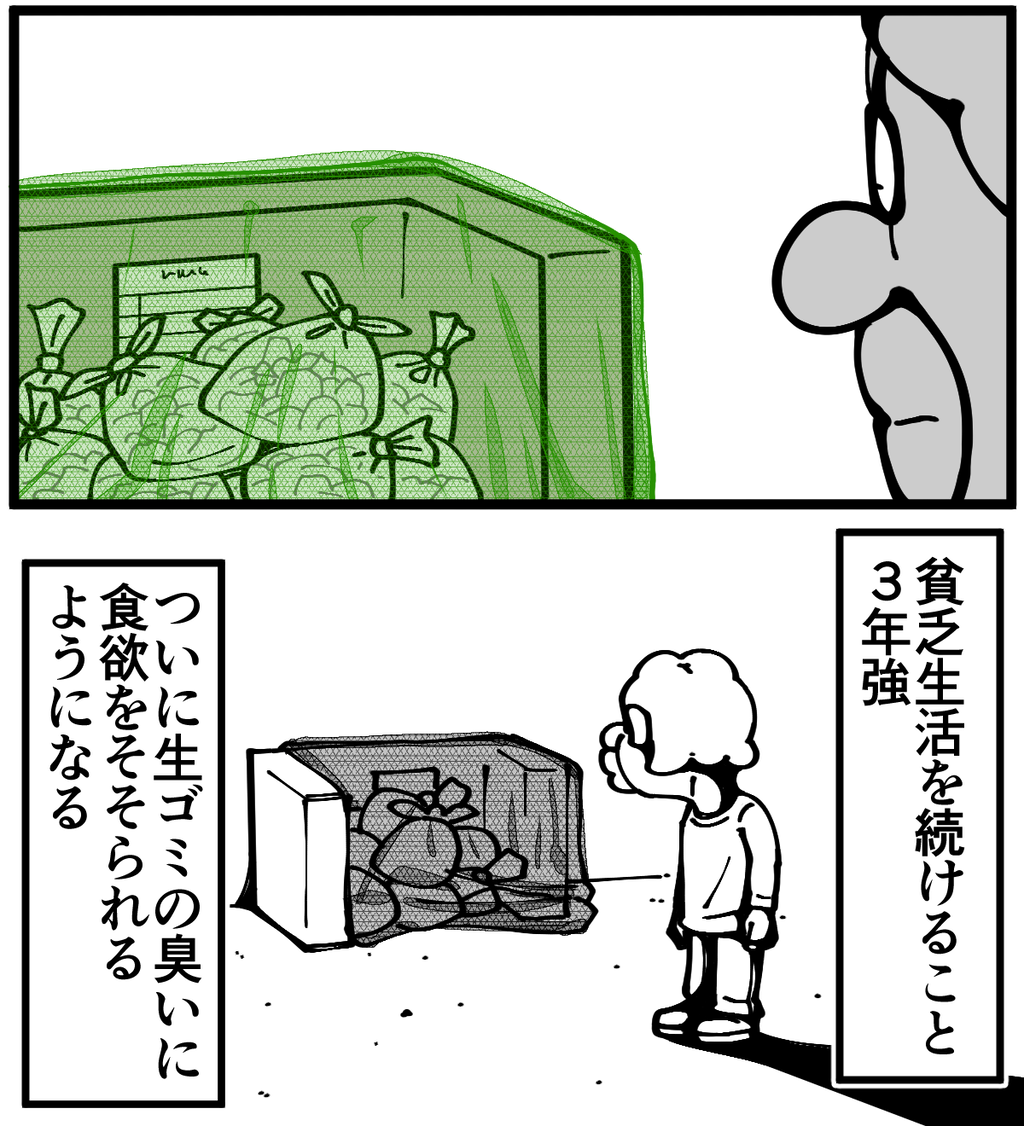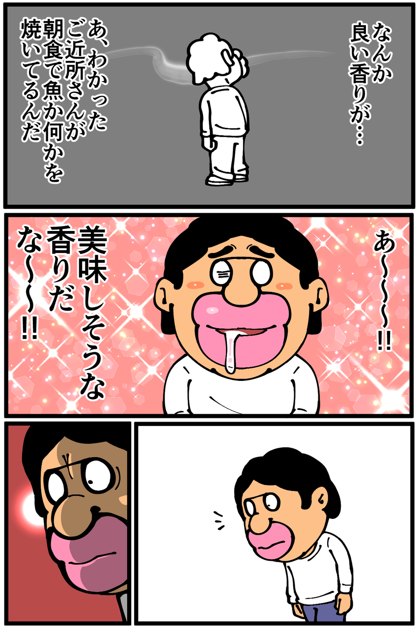 第881話「食欲をそそる香り」 2021年10月29日 安アパートでカツカツな生活を送る男の漫画ブログです。金が底を尽きてくたばるようなことがなければ毎日更新します。これもうベトベターだろ次の記事↓ うちの中で焼き魚の匂いがしてきた時の話↓あつ森プレイ動画アップしました↓大型アプデが来るということでおよそ半年ぶりに島に帰ってきました。●Twitterやってます。●登録していただくと更新通知がLINEで届きます↓ 「絵日記」カテゴリの最新記事 < 前の記事次の記事 > コメント コメント一覧 (31) 1. 🐟💕 2021年10月29日 23:02 さすがに。。 0 taikutsu_ken がしました 17. 退屈健 2021年11月07日 21:27 >>1 流石にヤバいですね…!笑 0 taikutsu_ken がしました 2. 益若つばさのファン 2021年10月29日 23:03 ベトベターはさすがに笑いますw 0 taikutsu_ken がしました 18. 退屈健 2021年11月07日 21:28 >>2 ベトベターに勝手に親近感を抱きました!笑 0 taikutsu_ken がしました 3. なめこ 2021年10月29日 23:05 ハエじゃん‼️ 0 taikutsu_ken がしました 19. 退屈健 2021年11月07日 21:28 >>3 ハエと仲良くなれそうです! 0 taikutsu_ken がしました 4. しのびのもの 2021年10月29日 23:10 目指せマタドガス… 0 taikutsu_ken がしました 20. 退屈健 2021年11月07日 21:29 >>4 目標ですね!笑 0 taikutsu_ken がしました 5. 名無し 2021年10月29日 23:14 えぇ…? 0 taikutsu_ken がしました 21. 退屈健 2021年11月07日 21:29 >>5 ヤバいですね…!笑 0 taikutsu_ken がしました 6. けたこ 2021年10月29日 23:29 な、何系の香りだったんです?? 0 taikutsu_ken がしました 22. 退屈健 2021年11月07日 21:29 >>6 何かを焼いている匂いかと…!笑 0 taikutsu_ken がしました 7. けいこ 2021年10月30日 00:26 ヒゲが妙にリアルで怖い💦 0 taikutsu_ken がしました 23. 退屈健 2021年11月07日 21:30 >>7 生々しく汚い描写ですみません…!笑 0 taikutsu_ken がしました 8. ゆきちお 2021年10月30日 04:51 ドロヌーバかベトベター⁉️不気味さ満点‼️ 0 taikutsu_ken がしました 24. 退屈健 2021年11月07日 21:30 >>8 なんであれ毒系のモンスターですね!笑 0 taikutsu_ken がしました 9. プチ 2021年10月30日 06:01 爽やかな朝だのコマの方がベトベターっぽいですね 0 taikutsu_ken がしました 25. 退屈健 2021年11月07日 21:31 >>9 見た目も寄ってきてます!笑 0 taikutsu_ken がしました 10. 以下、名無し 2021年10月30日 09:33 オフ会開いて先生にご飯をご馳走したい・・・ 0 taikutsu_ken がしました 26. 退屈健 2021年11月07日 21:31 >>10 ありがとうございます、そのお気持ちだけで元気百倍です!! 0 taikutsu_ken がしました 11. てか 2021年10月30日 11:02 どんな日々を送ると1コマ目な状態になるですか… 0 taikutsu_ken がしました 27. 退屈健 2021年11月07日 21:31 >>11 金欠生活が極まると…!笑 0 taikutsu_ken がしました 12. kyakya 2021年10月30日 15:46 カラッとしてて爽やかな朝には見えない顔です…💦💦💦 めちゃワロター🤣 よっぽど良い匂いの生ゴミだったのでしょう…… 0 taikutsu_ken がしました 28. 退屈健 2021年11月07日 21:31 >>12 恐らく俺の嗜好にピッタリの生ゴミだったんだと思います!笑 0 taikutsu_ken がしました 13. ぴぷ 2021年10月30日 18:27 僕は鍋の匂いにつられて今日は餃子鍋です😆 チルド(冷蔵)の生餃子は冷凍のやつより安いので、そいつを半分と、鍋野菜を一緒に水餃子みたいに煮てポン酢で食ってます。 餃子は冷凍しておけばまた鍋に使えるので経済的! 0 taikutsu_ken がしました 14. 嫁 2021年10月30日 20:53 >>13 王将の水餃子が死ぬほど美味かったのでオススメします。 水餃子なんて特に美味しいと思った事もない28歳の人生ですが(嘘、37歳です)王将の水餃子食べて初めて水餃子にハマりました。 0 taikutsu_ken がしました 29. 退屈健 2021年11月07日 21:32 >>13 おお!餃子鍋美味しそうですねー! この冬試してみます!! 0 taikutsu_ken がしました 15. 通行人 2021年10月30日 22:03 生の野菜を齧っていたときも思ったんですが なんか野生的な方向(?)に進んでますね… 0 taikutsu_ken がしました 30. 退屈健 2021年11月07日 21:32 >>15 野性味を極めていきたいところです!笑 0 taikutsu_ken がしました 16. 柑橘 2021年11月01日 23:35 え!?先生‥‥‥。 ゴミ置場の近くのお宅が魚焼いてたんですよね‥‥‥!?そうですよね!? 0 taikutsu_ken がしました 31. 退屈健 2021年11月07日 21:33 >>16 そうだと信じてます!!笑 0 taikutsu_ken がしました コメントフォーム 名前 コメント 記事の評価 リセット リセット 顔 星 情報を記憶 コメントを投稿する