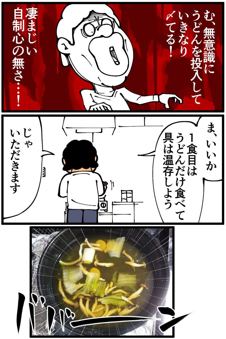 第943話「ちゃんこ鍋を作る」 2022年01月10日 安アパートでカツカツな生活を送る男の漫画ブログです。金が底を尽きてくたばるようなことがなければ毎日更新します。一気にほぼ完食(食べ過ぎ)。鍋はお手軽かつ美味しくて最高だったけど、次作るまでに欲求を抑えるメンタルトレーニングとかをした方がいい気がしました。次の記事↓ というか鍋を買いたい↓●Twitterやってます。●登録していただくと更新通知がLINEで届きます↓ 「絵日記」カテゴリの最新記事 「料理」カテゴリの最新記事 < 前の記事次の記事 > コメント コメント一覧 (34) 1. めーめ 2022年01月10日 22:49 退屈先生、いつも楽しく拝見させていただいております。 今回の記事はとてもビジュアルが美しかったのでちょっとビックリしてコメントさせていただきました。 とても美味しそうですね😊 0 taikutsu_ken がしました 18. 退屈健 2022年01月22日 01:27 >>1 ありがとうございます! 本当ですか、嬉しい限りです!!美味しかったです~! 0 taikutsu_ken がしました 2. いなぞう 2022年01月10日 22:58 マリオの漫画なんかを書かれていたころからのファンです。 初めてコメントします。 うちも今夜は鍋でした。 最近は色々鍋のスープもあって楽しいですよね。 先生が早く毎日違う鍋を食べられるようになるよう応援してます! 0 taikutsu_ken がしました 19. 退屈健 2022年01月22日 01:27 >>2 初めまして!漫画読んでいただけて嬉しい限りです! この時期の鍋は格別に美味しいですね~! ありがとうございます、頑張ります! 0 taikutsu_ken がしました 3. のば 2022年01月10日 22:59 色んな鍋つゆ試してみるといいですよ 個人的に白湯、ごま投入、豚骨醤油辺りが好みです 0 taikutsu_ken がしました 20. 退屈健 2022年01月22日 01:28 >>3 いいですね~!寒い時期に色々試してみようと思います! 0 taikutsu_ken がしました 4. 🏳️🌈🗿🏳️🌈 2022年01月10日 23:06 生姜が入ってたら「味付けに手を加えてる」ことになるんじゃ…? と思ってしまいました(o´罒`o)ニヒヒ♡ 鍋キューブ的なものも一人鍋にコスパいいですよ。 0 taikutsu_ken がしました 21. 退屈健 2022年01月22日 01:28 >>4 た、確かに!笑 鍋キューブなるものがあるんですか!! 0 taikutsu_ken がしました 5. 鶏もも肉 2022年01月10日 23:08 3コマ目に笑いました 0 taikutsu_ken がしました 22. 退屈健 2022年01月22日 01:28 >>5 ありがとうございます!笑 0 taikutsu_ken がしました 6. なめこ 2022年01月10日 23:12 理性飛ぶあるある。 0 taikutsu_ken がしました 23. 退屈健 2022年01月22日 01:29 >>6 欲求に負けちゃいますね!笑 0 taikutsu_ken がしました 7. プンバ 2022年01月10日 23:19 これはもう、溶き卵とご飯を入れるしかない! キューブの鍋の素が一番コスパ良いですよ。 先生、最近肌つや良いのでは?ちゃんとお野菜やらたんぱく質摂ってはるから、一安心。 0 taikutsu_ken がしました 24. 退屈健 2022年01月22日 01:29 >>7 溶き卵とご飯で〆るべきでしたね~! お肌は相変わらずカサカサですが食生活は一時期よりだいぶマシになったと思います!笑 0 taikutsu_ken がしました 8. 2022年01月11日 00:09 し、汁はまだ残ってるから… 0 taikutsu_ken がしました 25. 退屈健 2022年01月22日 01:30 >>8 ギリ残ってました!笑 0 taikutsu_ken がしました 9. けいこ 2022年01月11日 01:12 業務スーパーいいですよね よくヒルナンデスとかでも取り上げていてスパイシーチキンレッグがコスパ良くてオススメです お肉のコーナーに置いてあってチキンレッグが2本入って250円くらいです スープカレーみたいで美味しいですよ 0 taikutsu_ken がしました 26. 退屈健 2022年01月22日 01:30 >>9 おお、そうなんですか!スパイシーチキンレッグ、名前からして絶対美味しいやつですね…!今度行ったら探してみます、ありがとうございます!! 0 taikutsu_ken がしました 10. ゆきちお 2022年01月11日 04:44 世間の言う一人前って少なすぎると思います。 0 taikutsu_ken がしました 27. 退屈健 2022年01月22日 01:31 >>10 そうなんですよね!笑 0 taikutsu_ken がしました 11. ぺんぺん 2022年01月11日 07:18 簡単に栄養もとれて最高ですよね😆 百均の土鍋は割れたことがあるので買わない方が良いです笑 0 taikutsu_ken がしました 28. 退屈健 2022年01月22日 01:31 >>11 おおお、そうなんですか!それは危ない! 0 taikutsu_ken がしました 12. ぽぽんた 2022年01月11日 10:17 ものすごく美味しそうにみえます。 おなか減った。 0 taikutsu_ken がしました 29. 退屈健 2022年01月22日 01:31 >>12 ありがとうございます!美味しかったです! 0 taikutsu_ken がしました 13. うーりゃ 2022年01月11日 11:46 お鍋の魅力には抗えませんよね~。うどんで〆たのに、さらにまた玉子雑炊つくりたくなっちゃいますよね。そういえば、マイクラプレイ日記って一旦お休みですか?また、たまーにやってくださるとうれしいです。 0 taikutsu_ken がしました 30. 退屈健 2022年01月22日 01:32 >>13 マイクラプレイ日記更新滞っておりすみません!!観ていただいて嬉しい限りです!😭 実はストックもまだあったりするのでいつか更新するかもしれないです~! 0 taikutsu_ken がしました 14. ふーちゃ 2022年01月11日 12:01 お鍋良いですね〜