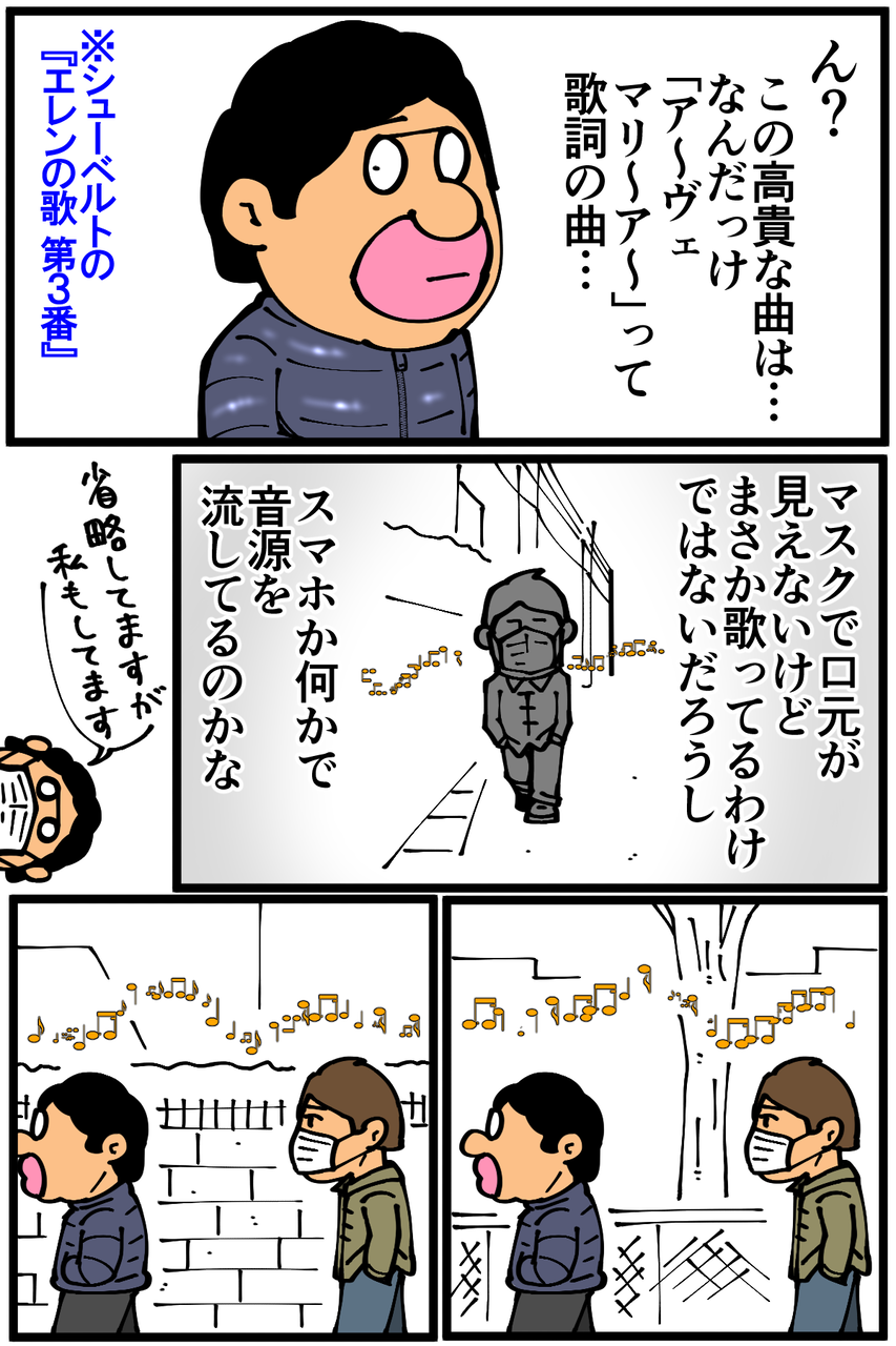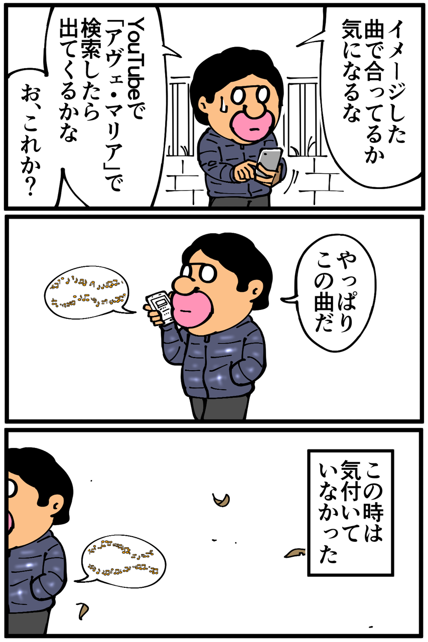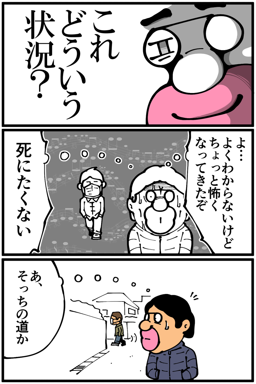 第959話「ある夜聴こえてきた歌曲」 2022年01月29日 安アパートでカツカツな生活を送る男の漫画ブログです。金が底を尽きてくたばるようなことがなければ毎日更新します。今考えるとビビり過ぎなんですが、人通りの少ない夜道というのもあって結構ビクビクしてしまった。何の被害も受けていないのに勝手にネタにしてすみません。気になり過ぎて後に「地域名+アヴェ・マリア」で調べてみたりもしたんですがそれらしい情報はヒットしませんでした(調べ方雑)。次の記事↓ 背中で語った時の話↓●Twitterやってます。●登録していただくと更新通知がLINEで届きます↓ 「絵日記」カテゴリの最新記事 < 前の記事次の記事 > コメント コメント一覧 (24) 1. なめこ 2022年01月29日 22:16 前の人もそんな感じで伝染状態だったんじゃないですかね。 0 taikutsu_ken がしました 12. 退屈健 2022年01月30日 21:37 >>1 かもしれないですね!笑 0 taikutsu_ken がしました 2. クラウザーさん 2022年01月29日 22:25 人っ気の無さも吹き飛ばすモーツァルトのディエス・イレを大声で流しましょう 何なら歌いましょう 0 taikutsu_ken がしました 9. 通りすがりの名無し 2022年01月30日 07:01 >>2 個人的にイメージしてみたところ、それはそれでその地域に別の都市伝説が生まれそうだなぁ、と思いました! 0 taikutsu_ken がしました 13. 退屈健 2022年01月30日 21:38 >>2 近所で有名なおじさんになれそうですね!笑 0 taikutsu_ken がしました 3. 以下、名無し 2022年01月29日 22:39 Bluetoothもしくはイヤホンが外れている振りをすればセフセフ⊂( ^ω^)つ 0 taikutsu_ken がしました 14. 退屈健 2022年01月30日 21:39 >>3 なるほど、その手が!笑 0 taikutsu_ken がしました 4. 金五郎助左衛門 2022年01月29日 23:15 厳かな讃美歌の調べが いずこからともなく聴こえてきたら お迎えが来たかと思ってしまうかもです👼 0 taikutsu_ken がしました 15. 退屈健 2022年01月30日 21:39 >>4 あの世に来てしまったのかと思いました!笑 0 taikutsu_ken がしました 5. スズメ 2022年01月30日 00:27 伝染するタイプの都市伝説…! 0 taikutsu_ken がしました 16. 退屈健 2022年01月30日 21:40 >>5 俺からまた別の方に伝染して、そこからまた別の方に…!笑 0 taikutsu_ken がしました 6. ゆきちお 2022年01月30日 04:09 Bluetoothが切れてスマホから音でちゃった、ってヤツたまにあるけどそれとは違う感じ😅 天国からのお迎えっぽくて怖そう 0 taikutsu_ken がしました 17. 退屈健 2022年01月30日 21:40 >>6 お迎え感が出てて怖かったです!笑 0 taikutsu_ken がしました 7. 鳥土竜 2022年01月30日 05:04 独自の美学持った殺人鬼感 0 taikutsu_ken がしました 18. 退屈健 2022年01月30日 21:40 >>7 微笑みながら殺されそうですね!笑 0 taikutsu_ken がしました 8. 通りすがりの名無し 2022年01月30日 06:54 この記事、私も「エレンの歌第3番」を頭の中で再生しながら読みました。あの「ジャンジャンジャンジャンジャン♪」という三連符のリズムが夜中に聴こえてくるとちょっと不穏かもしれませんね。 個人的には、どなたかの家からのテレビなどからの音漏れと拝察しましたがいかがでしょうか。 0 taikutsu_ken がしました 19. 退屈健 2022年01月30日 21:41 >>8 なるほど、テレビの音漏れ説!ちょっと怖かったのでそうであってほしいところです…!笑 0 taikutsu_ken がしました 10. ぺく 2022年01月30日 10:11 きれいなクラシックでも、宗教的な歌って怖いですよね(日本のお経的な) ホラー映画とかでありそうな……何もなくてよかったてます 0 taikutsu_ken がしました 20. 退屈健 2022年01月30日 21:42 >>10 厳かであるからこその怖さがありますね…!笑 ご心配いただきありがとうございます! 0 taikutsu_ken がしました 11. 更新ヤッター 2022年01月30日 14:49 不気味!通報されるかもだしもっとやってください 0 taikutsu_ken がしました 21. 退屈健 2022年01月30日 21:42 >>11 危うく通報されるところでした!笑 0 taikutsu_ken がしました 22. shizu 2022年02月13日 11:36 友人(女性)が夜道を歩いてる時に、前を歩いていた女性が、だんだん早足になり、しまいには叫び声を上げて走っていった事があって、あたしが男に見えたのか?って怒っていた事を思い出しました( ⑉¯ ꇴ ¯⑉ ) 0 taikutsu_ken がしました 23. TORAMAM 2022年02月13日 14:22 韓国ドラマに出てきそうな怖そうなシーンって感じから一転。吹いちゃいました😀 0 taikutsu_ken がしました 24. 映画に 2022年02月20日 12:49 出てきそうw タイトルは感染、とか 侵食とかいう感じで...w 0 taikutsu_ken がしました コメントフォーム 名前 コメント 記事の評価 リセット リセット 顔 星 情報を記憶 コメントを投稿する
