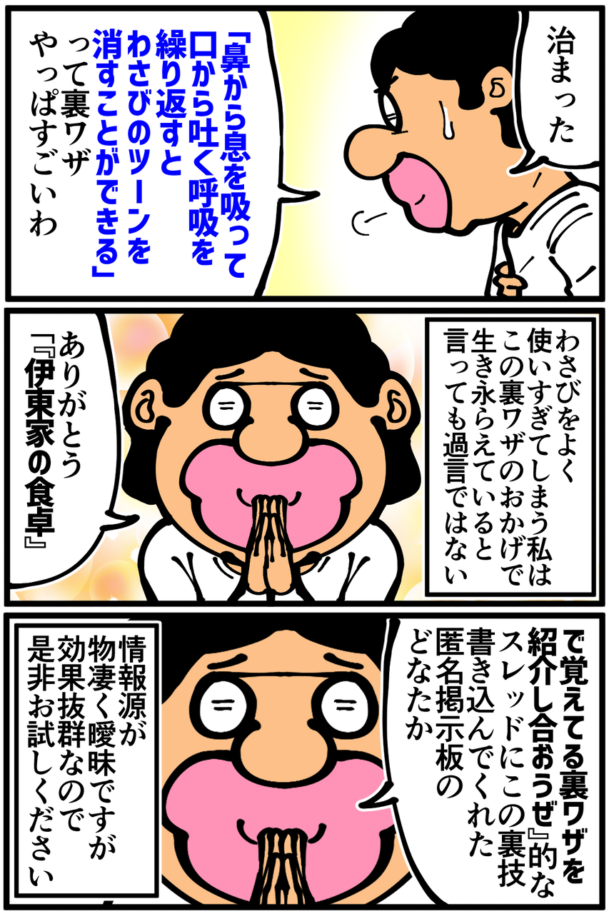この裏ワザを知るまでは「ツーンとした感覚が消えるまで胸を拳で強打する(無意味)」という謎の対処法をしていたのでいつか死んでた気がします。命を救ってくれた匿名掲示板の名無しさんに感謝!