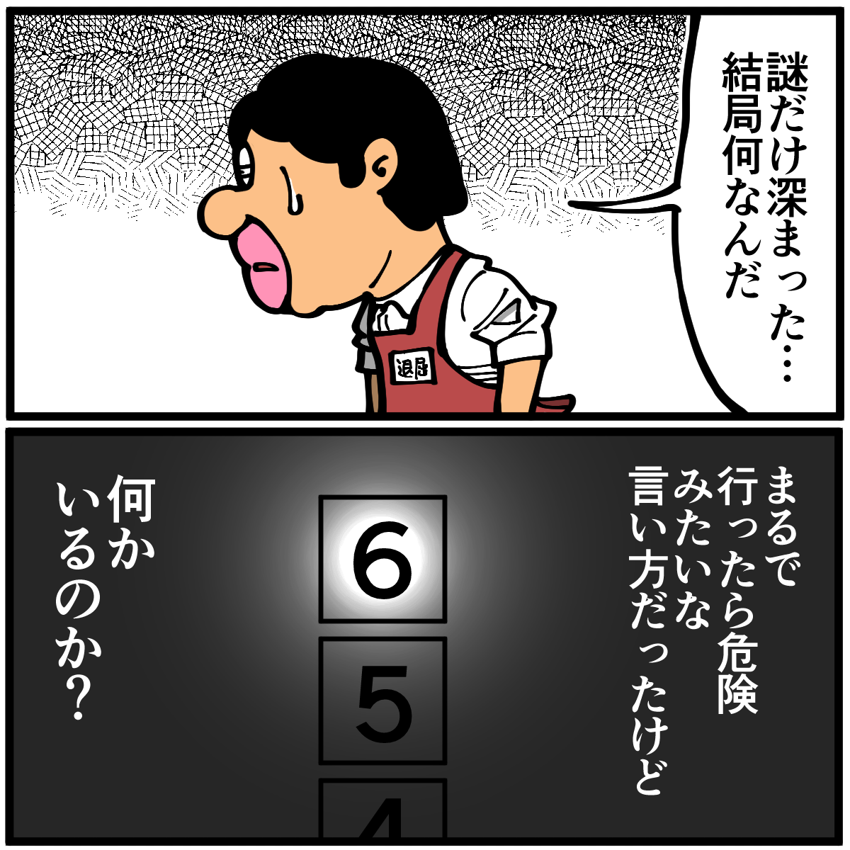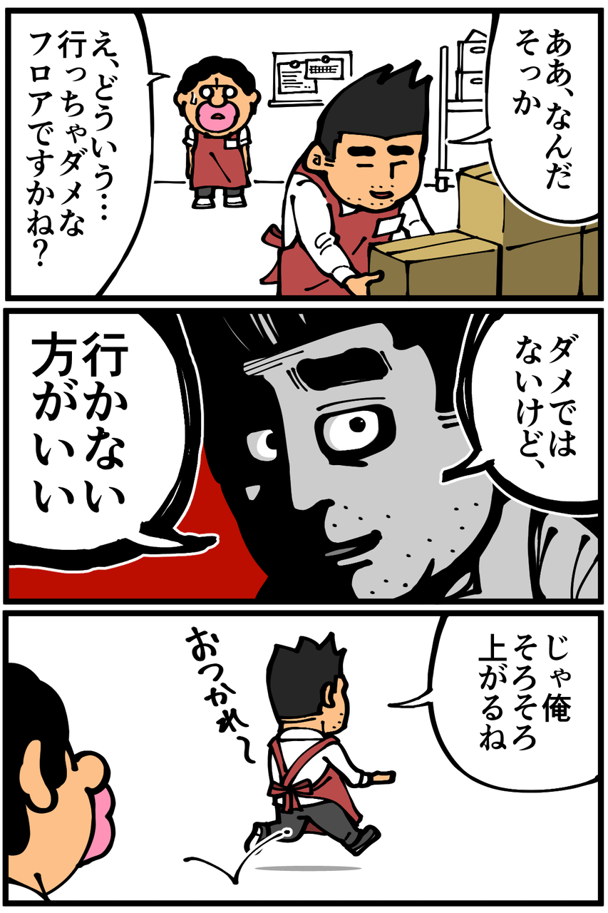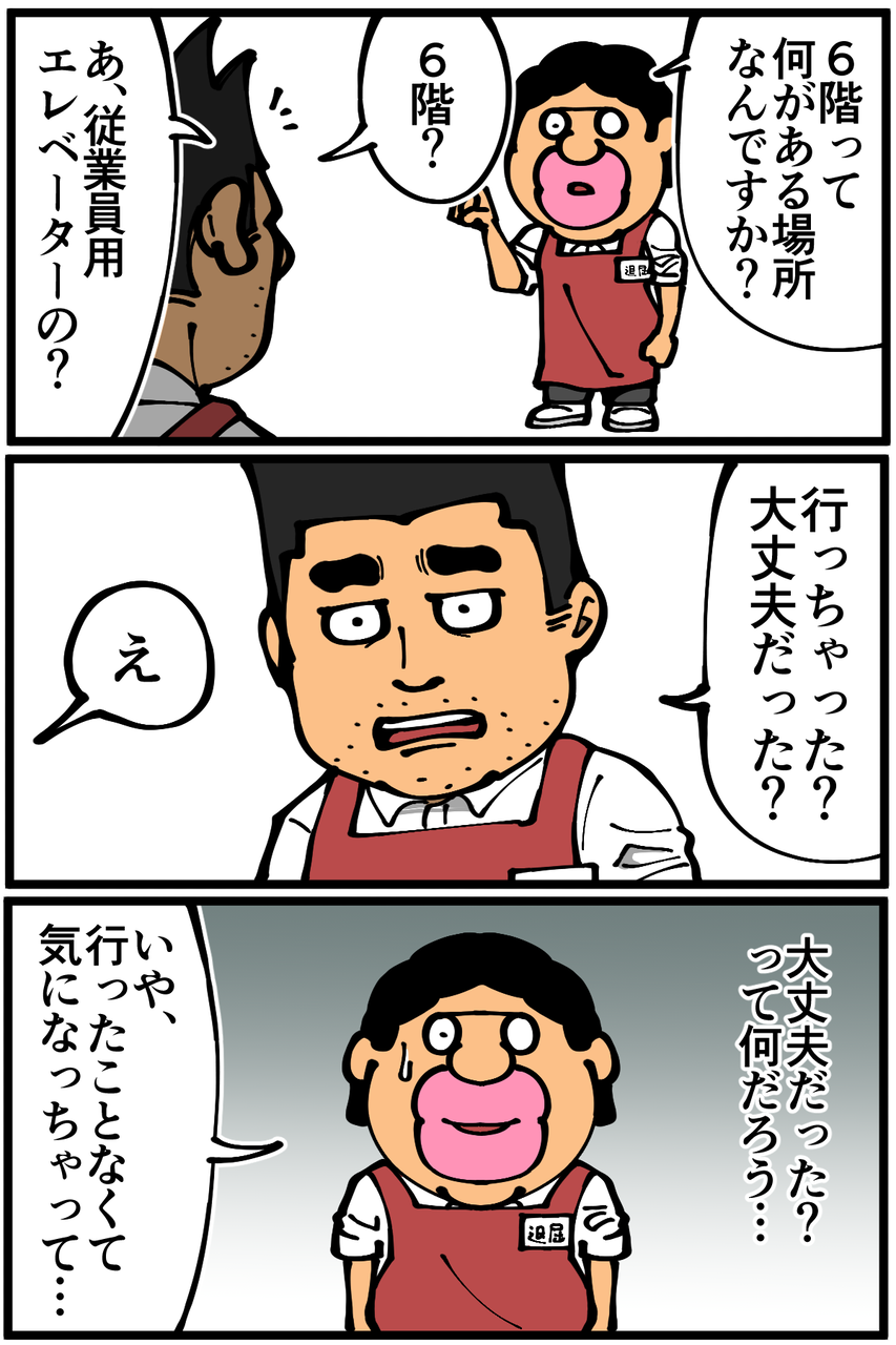 これは「退屈くん、キミはあのフロアに行ってしまったのかい?…残念だなぁ、キミはとても優秀なスタッフだったのに。あのフロアの秘密を知ってしまったからには、悪いけどキミとはここでお別れだね」となる展開でしょうか。