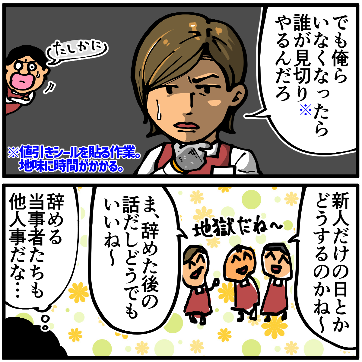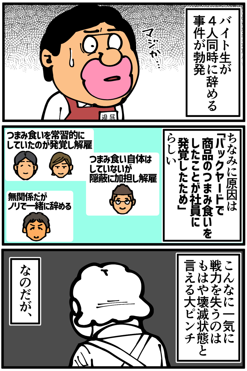 アルバイトを辞める理由がバックヤードでのつまみ食いがバレたことなのもクセが強めですし、ノリでバイトを辞める店員さんもクセが強めだと思ったのは私だけでしょうか…