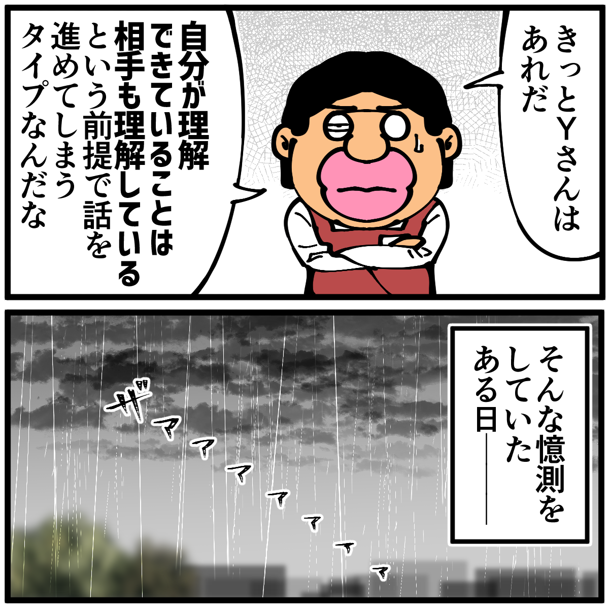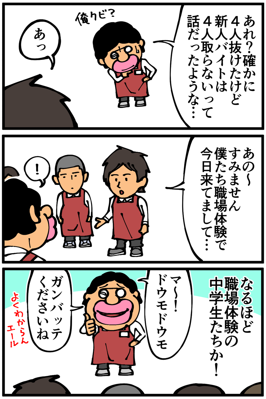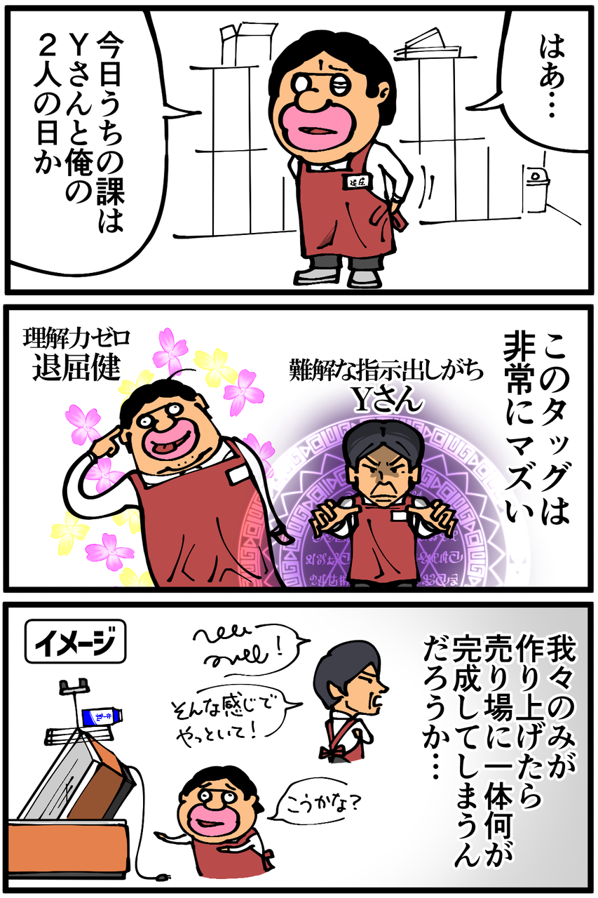 第1118話「【9】バイト先にいたクセが強すぎる社員さんの思い出」 2022年08月02日 安アパートでカツカツな生活を送る男の漫画ブログです。金が底を尽きてくたばるようなことがなければ毎日更新します。先日の記事の続きです。次回に続きます。続き↓ 1話から読む↓全話まとめページはコチラから↓中学時代の思い出↓ ●Twitterやってます。●Instagramでブログの過去記事など更新してます↓●登録していただくと更新通知がLINEで届きます↓●こちらのページから過去記事一覧が見られます↓●LINEスタンプ販売中です。 「絵日記」カテゴリの最新記事 「バイト先にいたクセが強すぎる社員さんの思い出」カテゴリの最新記事 < 前の記事次の記事 > コメント コメント一覧 (20) 1. 2-10(ニート) 2022年08月02日 21:56 職場体験ですか… 流石に教えるのは、Yさんでしょうけど、わからないときに解説するのが先生になりそうな予感… ガンバッテくださいね(過去のことですが。) 0 taikutsu_ken がしました 11. 退屈健 2022年08月03日 21:13 >>1 ありがとうございます! そうなんです、色々と大変でした…!笑 0 taikutsu_ken がしました 2. なめこ 2022年08月02日 22:09 ある意味の通訳と化しそう。 0 taikutsu_ken がしました 12. 退屈健 2022年08月03日 21:13 >>2 俺に通訳が務まるのかどうかという不安が…!笑 0 taikutsu_ken がしました 3. ふーちゃ 2022年08月02日 22:17 え……嫌な予感しかしない…… 0 taikutsu_ken がしました 13. 退屈健 2022年08月03日 21:14 >>3 俺も当時嫌な予感がしてました!笑 0 taikutsu_ken がしました 4. はわわ 2022年08月02日 23:00 あっ…(察し) 予想通りのことが起きたなら業務追加で追加請求できないんですかwww 0 taikutsu_ken がしました 14. 退屈健 2022年08月03日 21:14 >>4 追加請求させていただきたいところでした!笑 0 taikutsu_ken がしました 5. プンバ 2022年08月02日 23:05 何だか盛り上がってきましたよー!! この展開、どちらに転ぶ?楽しみー。 0 taikutsu_ken がしました 15. 退屈健 2022年08月03日 21:16 >>5 ありがとうございます! どちらに転ぶでしょうか…!笑 0 taikutsu_ken がしました 6. 紅茶スキー 2022年08月02日 23:28 職場体験で四人も来るのに、社員(バイト)が二人しかいないって結構な負担だと思うけど、どうなんだろう。 それとも別の課の子なのか。 0 taikutsu_ken がしました 16. 退屈健 2022年08月03日 21:20 >>6 微ネタバレですが「商品補充」としての職場体験だったようなので複数の課の元で体験する形だったようです! 0 taikutsu_ken がしました 7. まままと 2022年08月03日 00:14 わーーーーー!いい方へ進むのか悪い方へ進むのか… めっちゃ気になります!!! 0 taikutsu_ken がしました 17. 退屈健 2022年08月03日 21:20 >>7 ありがとうございます!本日更新します! 0 taikutsu_ken がしました 8. ユーリ 2022年08月03日 06:40 よくこんな時に職場体験などと…。 しかも天気は雨、低気圧頭痛で頭吹っ飛びそうですね! 0 taikutsu_ken がしました 18. 退屈健 2022年08月03日 21:22 >>8 確かに、そう考えると当時はまだ今ほど低気圧性頭痛に困ってなかったような気も…! 0 taikutsu_ken がしました 9. ゆきちお 2022年08月03日 13:16 職場体験、良い方に転んで欲しいなぁ。 0 taikutsu_ken がしました 19. 退屈健 2022年08月03日 21:28 >>9 職場体験の機会に嫌な思いはしたくないですよね…! 0 taikutsu_ken がしました 10. †ゆー君† 2022年08月03日 21:06 ちょっと気になったんですけどYさんのYって本名ですか?それとも苗字ですか? はたまた仮の名前ですか? 個人情報に関わることかもしれないので答えないでも大丈夫です。 0 taikutsu_ken がしました 20. 退屈健 2022年08月03日 21:29 >>10 仮名です! 0 taikutsu_ken がしました コメントフォーム 名前 コメント 記事の評価 リセット リセット 顔 星 情報を記憶 コメントを投稿する