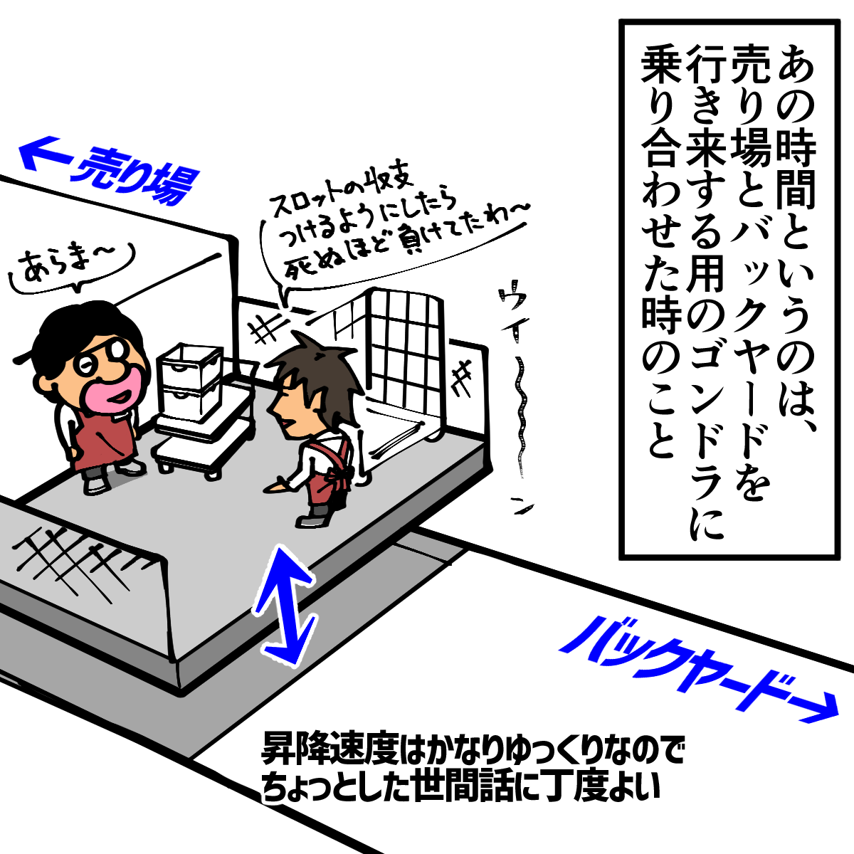 あのゴンドラは色々な人が頻繁に使うというのもあって、交流スポットとして地味にありがたい存在でした。でも一人で乗ってる時に暇すぎるのが難点。
