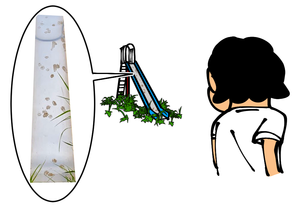 滑り台を見たら猫の物と思しき足跡が付いていて癒されました。若干ずり落ちたっぽい足跡もあるのが可愛い。