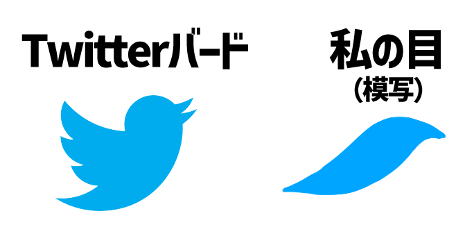 目の方がもっと変な形だった。Twitterバードの方がパッチリしてますね。もういいです。