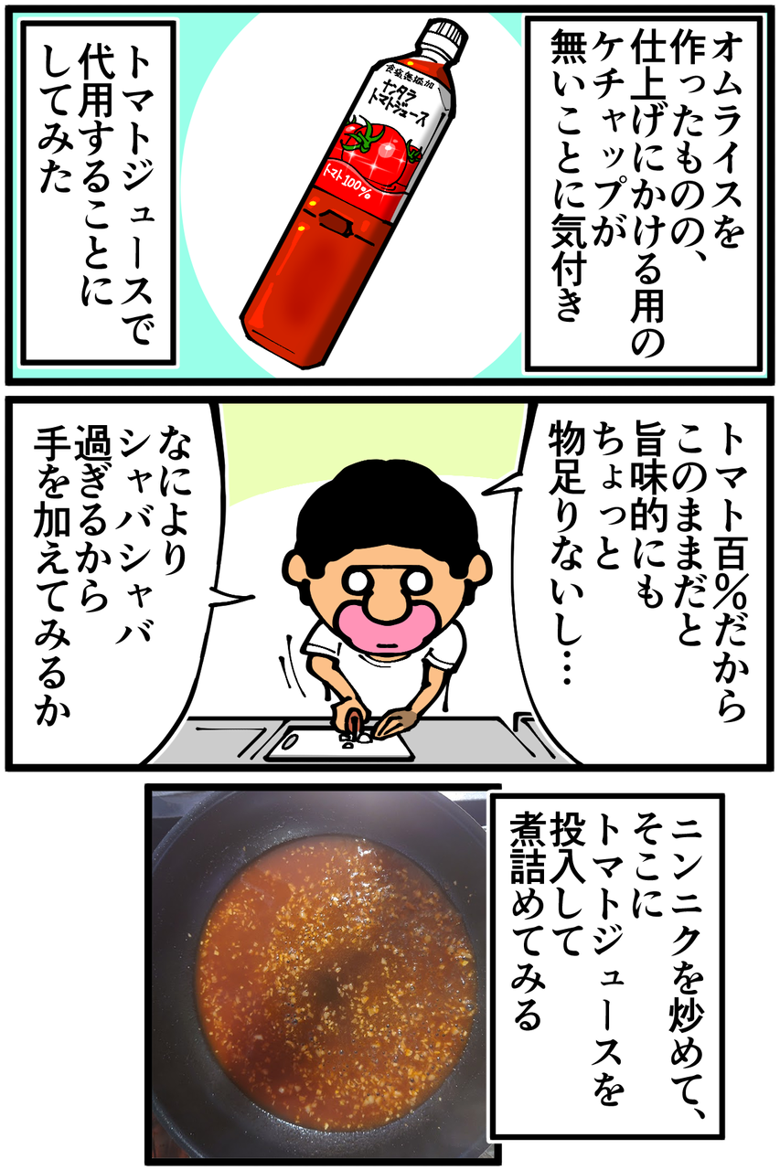 てっきり、トマトジュースをそのままオムライスにかけるという暴挙にでるものかと思って1日を過ごしていました。