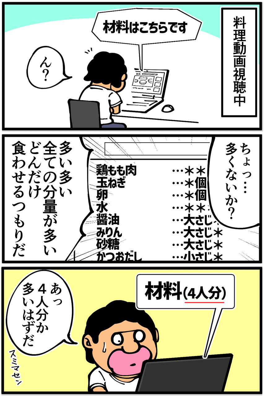 「鍋とかならわかるけど丼とかのレシピが数人分なのはどういうことなんだろう?」と一瞬でも本気で思ってしまった自分が悲しい。
