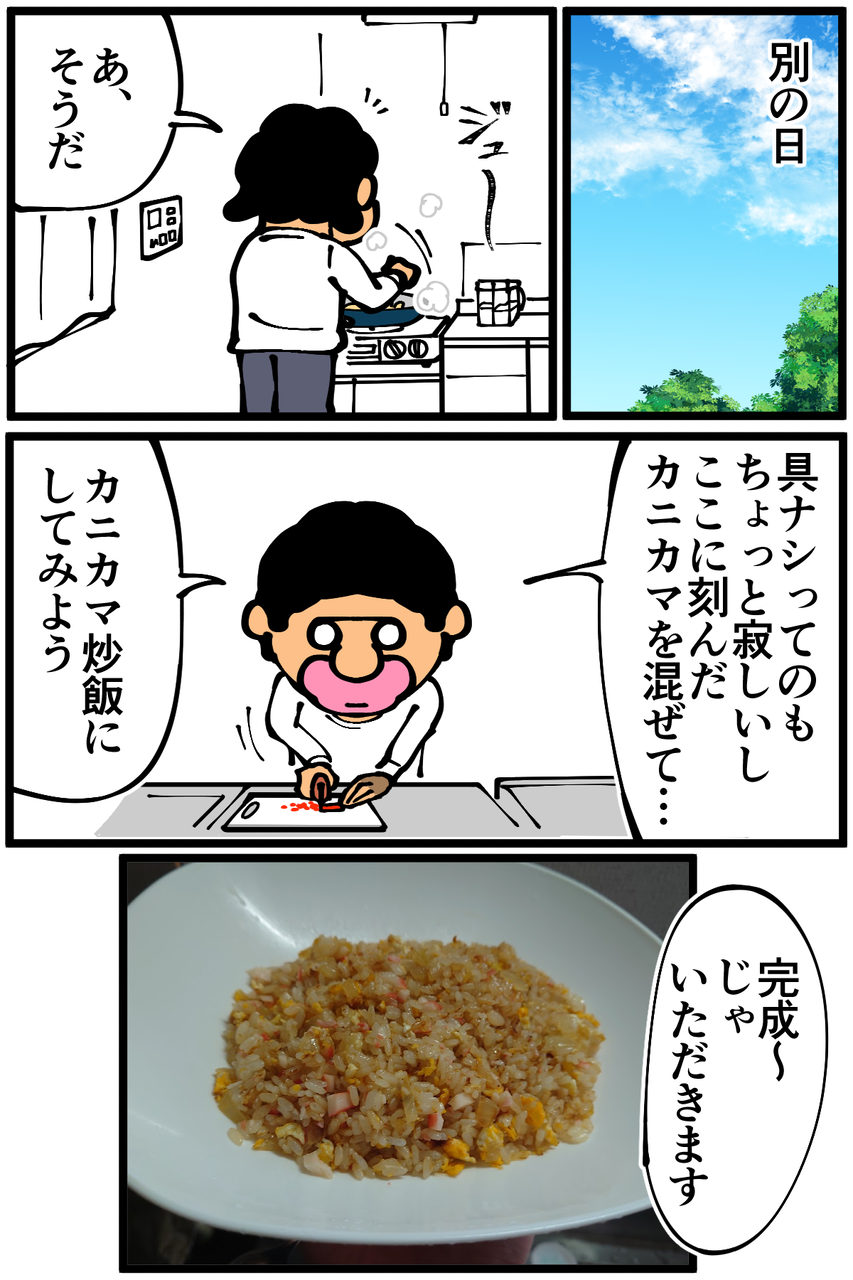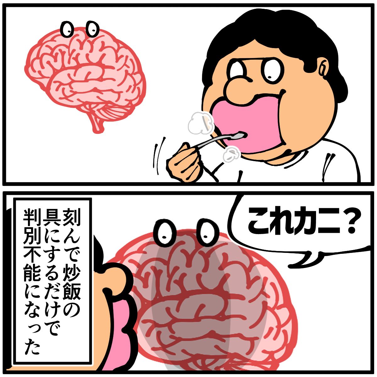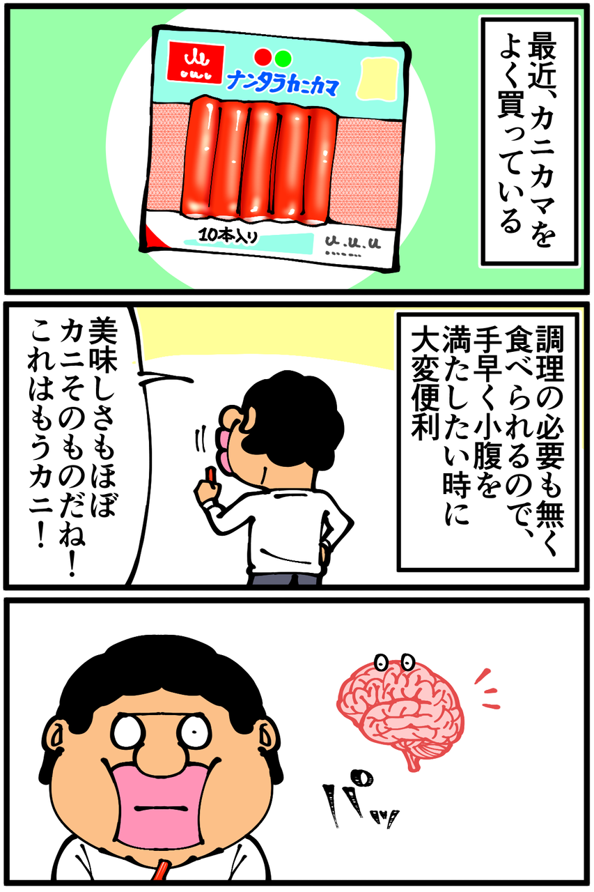 第1233話「最安カニカマとカニの違い」 2022年11月12日 安アパートでカツカツな生活を送る男の漫画ブログです。金が底を尽きてくたばるようなことがなければ毎日更新します。簡単に騙せたのでやっぱり深刻な馬鹿舌のようです。最初に自分でカニカマをカニだと言い聞かせておいて何ですが、そのくらいの違いはちゃんと判別できるようになりたい。安いのに美味しすぎるカニカマのせいということにしておきます。次の記事↓ 300円でズワイガニを買った時の話↓ ●Twitterやってます。●Instagramでブログの過去記事など更新してます↓●登録していただくと更新通知がLINEで届きます↓●こちらのページから過去記事一覧が見られます↓●LINEスタンプ販売中です。 「絵日記」カテゴリの最新記事 < 前の記事次の記事 > コメント コメント一覧 (35) 1. なめこ 2022年11月12日 22:32 幸せならいいのよ❤ 0 taikutsu_ken がしました 19. 退屈健 2022年11月15日 17:12 >>1 幸せならOKですね!笑 0 taikutsu_ken がしました 2. ??? 2022年11月12日 22:54 手早く小腹を満たせる……って、先生は、そんなに小食だったかしら? 0 taikutsu_ken がしました 20. 退屈健 2022年11月15日 17:14 >>2 割と平均的な気はするんですが、カニカマ4~5本一気食いして水をガブ飲みすると良い感じに満たされます!笑 0 taikutsu_ken がしました 3. しのびのもの 2022年11月12日 23:13 カニカマ軽く揉んでほぐし気味に食べたらすごく美味いんだけど指先がすごくカニカマ臭になっ 0 taikutsu_ken がしました 21. 退屈健 2022年11月15日 17:14 >>3 カニカマほぐすとカニ感も増して美味しいですよね~!笑 0 taikutsu_ken がしました 4. おいしいは正義♪ 2022年11月12日 23:23 カニカマは お手頃&お手軽な庶民の味方✨🦀✨ 例え安価でも満腹感・幸福感得られるなら 高価な品と同価値⚖️ …と、言えないこともないかもしれないw カニカマを芯にして卵焼きを作ると 美味しいしボリュームアップするし 見た目もキレイでオススメです(^^) ※卵液に青のりも混ぜると更に彩り良し👍※ 0 taikutsu_ken がしました 22. 退屈健 2022年11月15日 17:15 >>4 カニカマは本当庶民の味方ですよね~!ちくわと並んで最近のうちの隠れエースです!笑 なるほど、カニカマ入り卵焼き!ありがとうございます、今度試してみます! 0 taikutsu_ken がしました 5. 2−10(ニート) ※安全なブログです 2022年11月12日 23:33 視覚による情報も大きいのですかね〜? 0 taikutsu_ken がしました 23. 退屈健 2022年11月15日 17:16 >>5 確かに、それもかなり大きい気がします! 0 taikutsu_ken がしました 6. 紅茶スキー 2022年11月13日 00:11 カニカマ炒飯はお手軽で美味しいですよね。特に最近はカニの風味やエキスが入っていてクオリティも高いですし。 というより、炒飯随分と上達されましたね。 昔はもやしを刻んでべちょべちょにしていましたのに。 後は上に青ネギ載せたり、カニカマをよーくほぐして上にちょこんと載せるだけでかなりそれっぽくなるのでは? 0 taikutsu_ken がしました 7. 紅茶スキー 2022年11月13日 00:13 >>6 あとは同じ要領でカニ(カマ)のトマトクリームパスタとか 0 taikutsu_ken がしました 24. 退屈健 2022年11月15日 17:19 >>6 お手軽かつカニ感がより感じられていいですよね~! おお、本当ですか上達してますか!ありがとうございますー!! もやし入りべちゃべちゃ炒飯作ってましたね~懐かしい!笑 なるほど、盛り付け方!参考になりますありがとうございます! 0 taikutsu_ken がしました 8. ひぼし 2022年11月13日 00:38 脳みそ君ポンコツ可愛い…(失礼) 0 taikutsu_ken がしました 25. 退屈健 2022年11月15日 17:19 >>8 やはりポンコツでした!笑 0 taikutsu_ken がしました 9. 退屈先生のファン 2022年11月13日 01:10 めちゃくちゃ幸せそう(笑) 0 taikutsu_ken がしました 26. 退屈健 2022年11月15日 17:19 >>9 幸せでした!笑 0 taikutsu_ken がしました 10. はわわ 2022年11月13日 02:23 カニカマをそのままバクバク食べるのは贅沢で美味しいし最高ですよね!! 0 taikutsu_ken がしました 27. 退屈健 2022年11月15日 17:20 >>10 お手軽に贅沢な気分が味わえて最高ですね!笑 0 taikutsu_ken がしました 11. ゆきちお 2022年11月13日 04:08 脳みそ君、騙される‼️ 蟹玉風にしても美味しいです。 0 taikutsu_ken がしました 28. 退屈健 2022年11月15日 17:20 >>11 かに玉風にするのもよさそうですね~!今度作ってみます! 0 taikutsu_ken がしました 12. みき 2022年11月13日 06:25 安いけど美味しいカニかまは好きだけど、脳の絵がリアルですね❗ 0 taikutsu_ken がしました 29. 退屈健 2022年11月15日 17:21 >>12 フリー素材の脳の絵を参考に描いた結果リアルになりました!笑 0 taikutsu_ken がしました 13. かきのたね 2022年11月13日 10:40 脳みそくん話すの面白いです🧠 0 taikutsu_ken がしました 30. 退屈健 2022年11月15日 17:21 >>13 ありがとうございます!笑 0 taikutsu_ken がしました 14. あんず 2022年11月13日 10:53 目隠しをして、 食べたら 私の脳も 「これは、蟹?」と 騙されそうです(笑) 0 taikutsu_ken がしました 31. 退屈健 2022年11月15日 17:21 >>14 確かに、目隠ししたらもはや何もかもわからなくなって何でも騙させそうです!笑 0 taikutsu_ken がしま