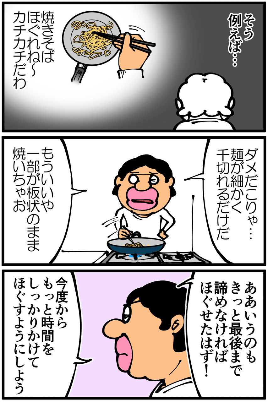 第1274話「名言を自分の人生に応用」 2022年12月26日 安アパートでカツカツな生活を送る男の漫画ブログです。金が底を尽きてくたばるようなことがなければ毎日更新します。カチカチの焼きそばとの格闘にしか応用できない男。カチカチの焼きそばも一番強い(硬い)奴(箇所)を倒せば(ほぐせば)全体が乱れて崩せるのでね。無理がありますね。ちなみにバガボンドの推しキャラは宝蔵院胤舜です。次の記事↓ 私のモチベーションの色↓ 実家から持って来た漫画↓●Twitterやってます。●Instagramでブログの過去記事など更新してます↓●登録していただくと更新通知がLINEで届きます↓●こちらのページから過去記事一覧が見られます↓●LINEスタンプ販売中です。 「絵日記」カテゴリの最新記事 < 前の記事次の記事 > コメント コメント一覧 (28) 1. ユーリ 2022年12月26日 21:53 胤舜、イイトコきますね‼️まつ毛長い人ですよね❗️ 私はおつうさんかな⁉️ 0 taikutsu_ken がしました 15. 退屈健 2022年12月29日 23:03 >>1 まつげ長い人です~! おつうさんいいですね!!おつうさんと城太郎のコンビ大好きです!笑 0 taikutsu_ken がしました 2. ひっくり返す 2022年12月26日 21:59 焼きそば焼いたりラーメン茹でたりするときは、 ほぐそう!と思って箸で突っついちゃダメです。 『無心で10回、麺を塊のままひっくり返す』といいですよ。 最初の数回は半信半疑でも、最後は勝手に麺がほぐれてきます。 0 taikutsu_ken がしました 16. 退屈健 2022年12月29日 23:04 >>2 なるほど、塊のままひっくり返すのがコツでしたか!! ありがとうございます、試してみます! 0 taikutsu_ken がしました 3. なめこ 2022年12月26日 21:59 『先に麺だけ炒めてよけておく』 『レンジにかけておく』 『水ちょっと入れる』 などですわねぇ。 0 taikutsu_ken がしました 17. 退屈健 2022年12月29日 23:04 >>3 なるほど!ありがとうございます! 0 taikutsu_ken がしました 4. 2−10(ニート) ※安全なブログです 2022年12月26日 22:20 このクオリティのブログの毎日投稿も「偉大な事」だと思うので十分誇って良いと思います! 麺の方は、レンジでチンして手でほぐす(冷え性にも良いかも⁉︎)か、フライパンに麺と一緒に料理酒を麺一袋に対して大さじ1入れる(このやり方だと味に深みが出る)などの方法があります! 0 taikutsu_ken がしました 18. 退屈健 2022年12月29日 23:05 >>4 ありがとうございます、そう言っていただけて嬉しい限りです!😭 なるほど!レンチンして揉むのは確かにカイロ的な役割も果たせそうでいいですね!笑 0 taikutsu_ken がしました 5. なし 2022年12月26日 22:27 軍師の言葉は、 含蓄深いですね。 その信条のもとで 作られる 焼きそばも、 味わい深いでしょうね。 ところで先生は、 塩とソース どっち派ですか? 0 taikutsu_ken がしました 19. 退屈健 2022年12月29日 23:06 >>5 僕は基本ソース焼きそばを作ってるんですがカップ焼きそばではどちらも好きなので大体買う割合は半々です! 0 taikutsu_ken がしました 6. かっちゃん 2022年12月26日 22:43 焼きそばがほぐれないときは、固めに焼く日田焼きそばにすれば良きかと思いますぞ😅 0 taikutsu_ken がしました 20. 退屈健 2022年12月29日 23:06 >>6 敢えて硬く焼くのもいいですね! 0 taikutsu_ken がしました 7. ペコ太郎 2022年12月26日 23:05 名言を料理に活かそうとする先生の姿勢、ご立派です。 ほんと、焼きそばほぐれない時ありますよね!水入れてるのにー!何でこの部分だけほぐれないー!って奮闘してます。 0 taikutsu_ken がしました 21. 退屈健 2022年12月29日 23:07 >>7 ありますよね~! 何故かそこだけ硬い的な!笑 0 taikutsu_ken がしました 8. やきそばの精霊 2022年12月27日 02:28 カチカチの焼きそばは水を入れて蓋をするのです。 勝手にほぐれます。 0 taikutsu_ken がしました 22. 退屈健 2022年12月29日 23:08 >>8 水とフタが重要でしたか!ありがとうございます、試してみます! 0 taikutsu_ken がしました 9. ゆきちお 2022年12月27日 07:33 忍耐の全てが焼きそばの麺に全振り💧 0 taikutsu_ken がしました 23. 退屈健 2022年12月29日 23:08 >>9 全てが焼きそばに繋がってしまいました…笑 0 taikutsu_ken がしました 10. みー 2022年12月27日 14:43 あのほぐれない感がイライラしちゃうので、先にお湯で麺をほぐしてから炒めます! 0 taikutsu_ken がしました 24. 退屈健 2022年12月29日 23:08 >>10 先にほぐすのがよいかもしれないですね! 0 taikutsu_ken がしました 11. うーりゃ 2022年12月27日 15:54 ソエ! 0 taikutsu_ken がしました 25. 退屈健 2022年12月29日 23:09 >>11 ソエアアアアアアア!!!!(再戦時) 0 taikutsu_ken がしました 12. 舞茸 2022年12月27日 18:24 「戦わずして勝ちを得るのは、良将の成すところである」 水入れましょうw バカボンド未読です歴史物は好きなので いつか読んでみたいですね。 0 taikutsu_ken がしました 26. 退屈健 2022年12月29日 23:09 >>12 バガボンド本当オススメです!!!是非!! 0 taikutsu_ken がしました 13. 右源も好き 2022年12月27日 19:09 井上先生しばらく映画製作に注力してましたが、バガボンドの続きも待ち遠しいですね~ 推しは清十郎です 0 taikutsu_ken がしました 27. 退屈健 2022年12月29日