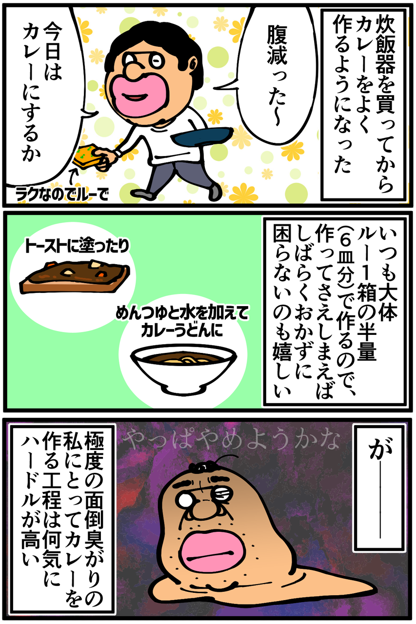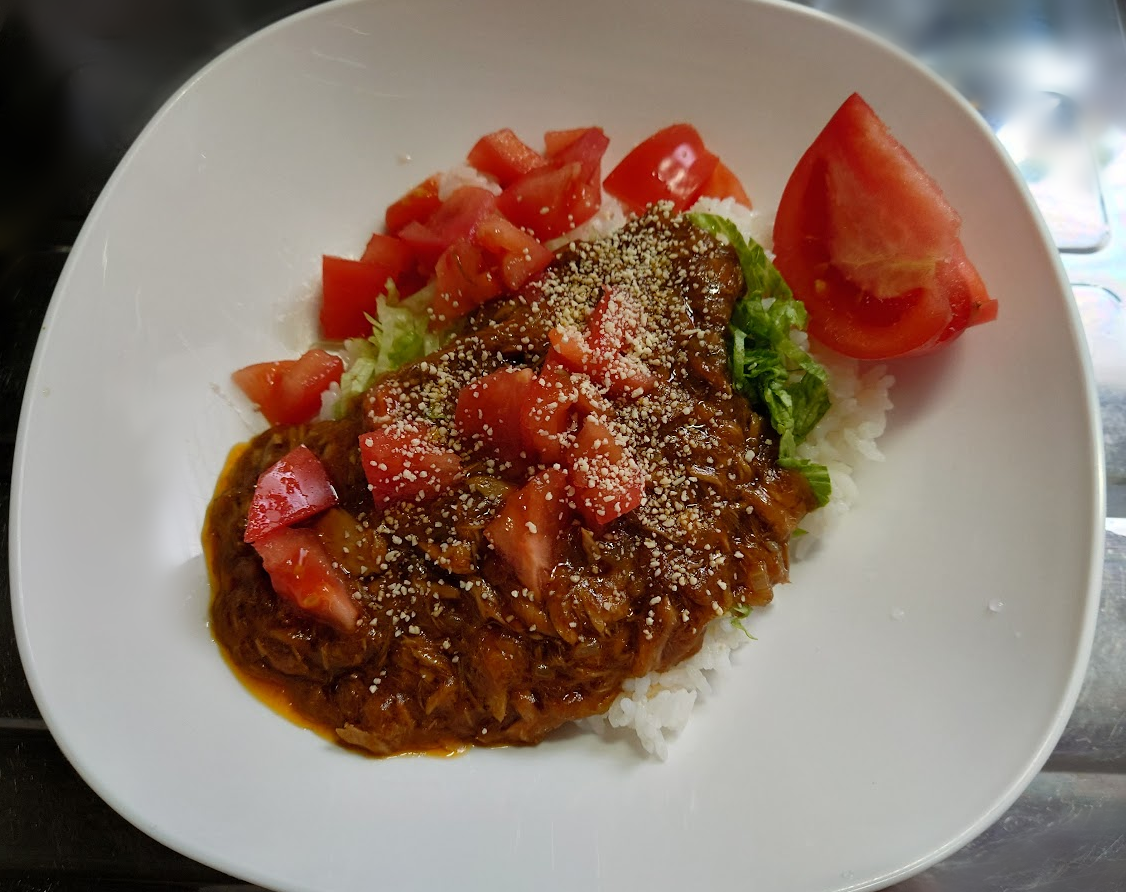 そんなわけでカレーを作る日は少々気合いを入れて臨んでいたのですが、最近は「肉も無いし煮込むのも面倒臭い」という日に1人分の手抜きカレーを作るようになったので、そのレシピを載せようと思います。
