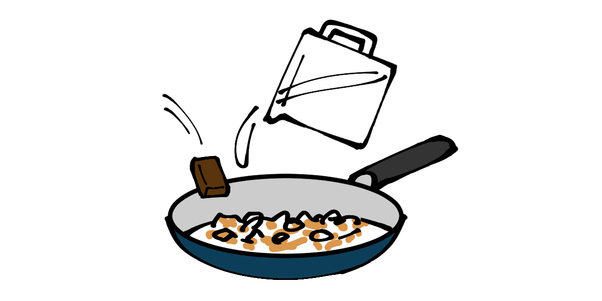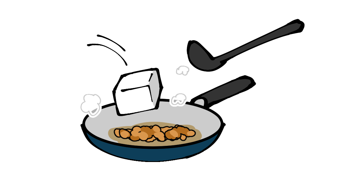 いきなり死ぬほど面倒臭い工程なんですが「飴色になるまで炒めた玉ねぎが入っていれば味に関してはどうにかなる」と信じているので、肉による旨味が出せない問題を解決すべくここだけは妥協せず頑張ってます。あればにんにくのみじん切りも一緒に。