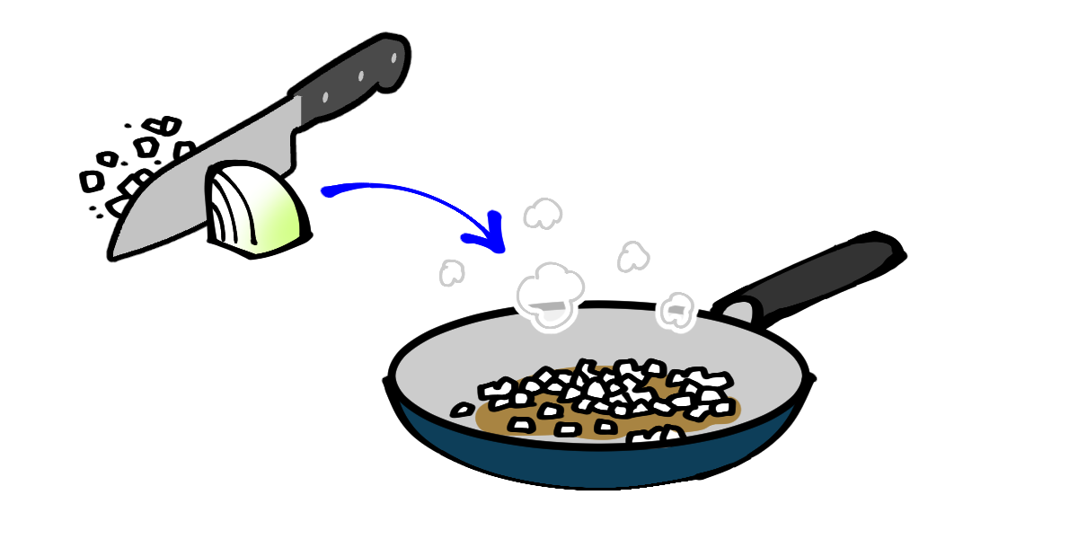 ①玉ねぎをみじん切りにして飴色になるまで炒める