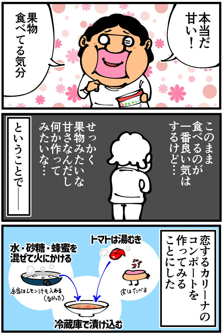 元々甘い品種を何故甘いシロップ漬けにしたのかは自分でも不明です。参考にしたレシピをよく見たら「これなら酸っぱいトマトも甘くなります!」とありました。