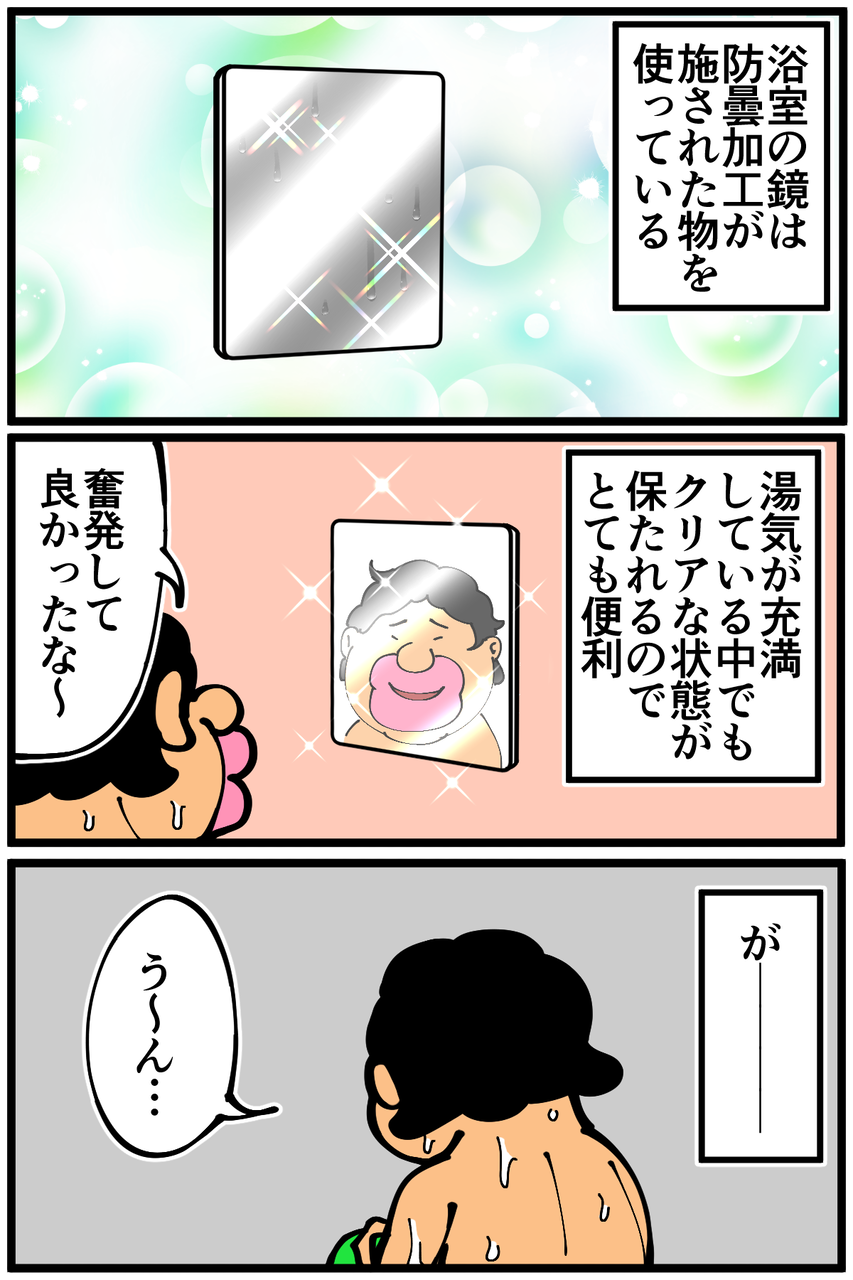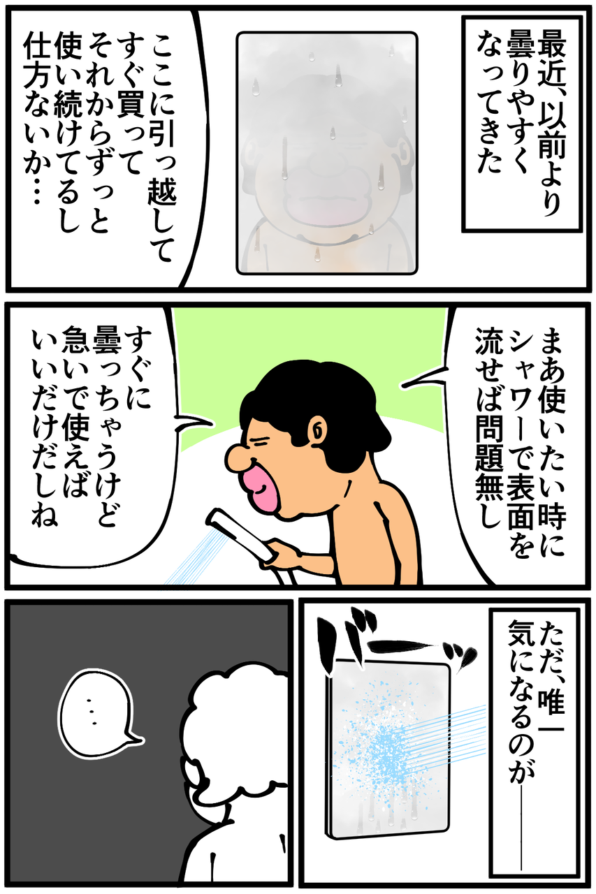 (鏡の曇り、クエン酸とかお酢を使ってみるのはいかがでしょう…?)