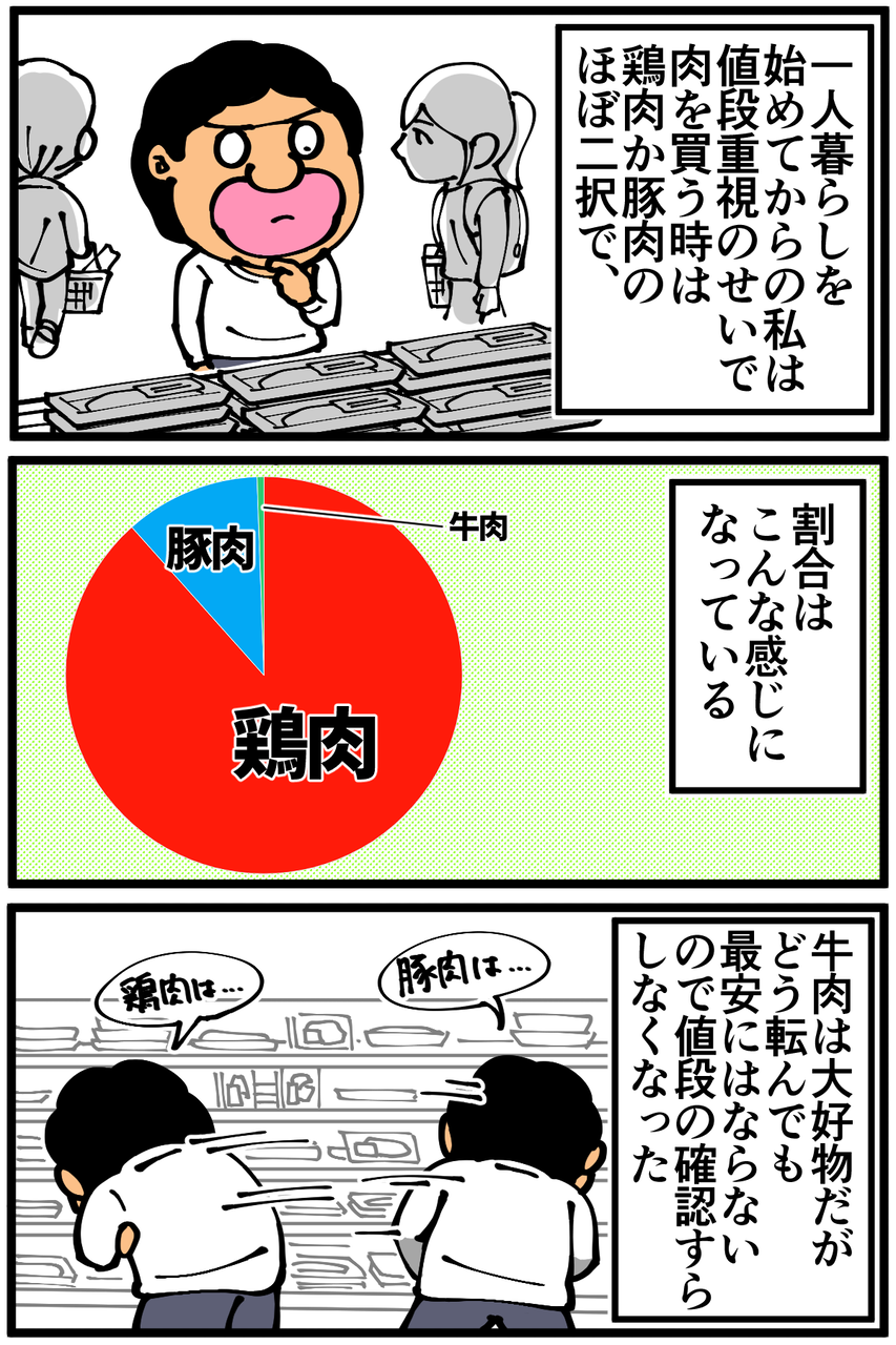 前のアパートにいた時の方がまだ牛肉よく買ってた気がする↓