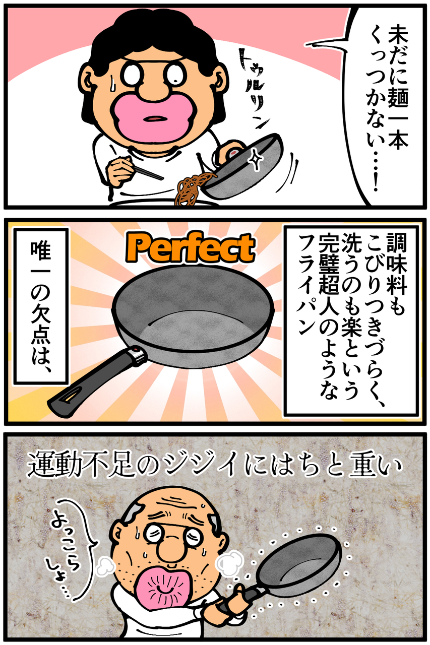 深型を買ったのでそれもあってちょっとズッシリとした重みはあるけど、逆に言うと気になる点がそこしか無いくらい使い心地が良いのでバッラリーニ社のフライパンオススメです。