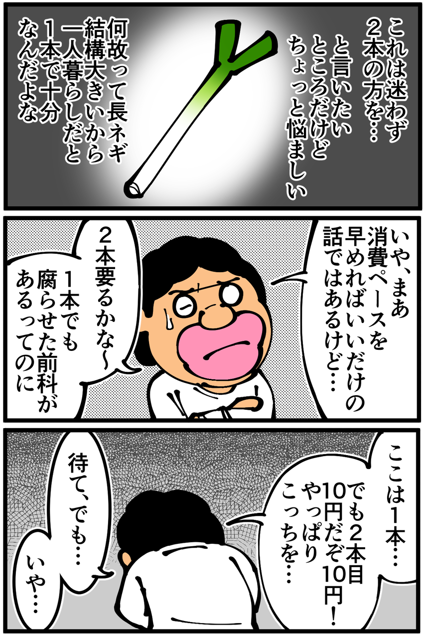 第1381話「特売の長ネギに対する葛藤」 2023年04月19日 安アパートでカツカツな生活を送る男の漫画ブログです。金が底を尽きてくたばるようなことがなければ毎日更新します。考えてるうちにワケわからなくなって気付いたら2束買ってました。というかいざとなったら冷凍すればいいだけなんですが、とりあえず大量消費したいのでオススメのネギレシピがありましたら教えて頂けると幸いです!次の記事↓ ネギを腐らせた経験が活きた(?)瞬間↓一時期食べまくっていた↓●Twitterやってます。●Instagramでブログの過去記事など更新してます↓●登録していただくと更新通知がLINEで届きます↓●こちらのページから過去記事一覧が見られます↓●LINEスタンプ販売中です。 「絵日記」カテゴリの最新記事 < 前の記事次の記事 > コメント コメント一覧 (90) 1. スズメ 2023年04月19日 22:54 刻んで納豆に入れてるだけで意外と早く無くなる気がするんですが、そんなことないですかね? 0 taikutsu_ken がしました 45. 退屈健 2023年04月22日 00:56 >>1 納豆との組み合わせは最強ですね…!! 0 taikutsu_ken がしました 2. ごみむしまん 2023年04月19日 22:54 ネギ様は薬味にして良し主役にして良しの神の食材ですのでいくら買っても困りません 0 taikutsu_ken がしました 46. 退屈健 2023年04月22日 00:56 >>2 確かに!主役にも脇役にもなる神の食材なのでむしろ足りない可能性もありますね!笑 0 taikutsu_ken がしました 3. あ 2023年04月19日 22:55 ネギ塩ダレ作ろう 0 taikutsu_ken がしました 47. 退屈健 2023年04月22日 00:56 >>3 ネギ塩だれつくってみます!! 0 taikutsu_ken がしました 4. ゆかゆかん 2023年04月19日 22:56 使いやすい大きさに切ってビニール袋に入れたら冷凍保存できますよ〜😊 0 taikutsu_ken がしました 48. 退屈健 2023年04月22日 00:57 >>4 冷凍して常備しておくのめちゃくちゃよさそうですね!余った分全部冷凍しようと思います! 0 taikutsu_ken がしました 5. kawloon 2023年04月19日 22:57 豚肉でも鶏肉でも一緒に塩で炒めちゃいましょう! マジでそれくらいシンプルな方が美味いっす! 0 taikutsu_ken がしました 49. 退屈健 2023年04月22日 00:58 >>5 いいですね~!なんだかんだそういうのが一番美味しいですよね!! 0 taikutsu_ken がしました 6. hi 2023年04月19日 22:58 レンジはありましたっけ? 5センチぐらいのブツ切りにしてフライパンで焼いてでもいいので、火を通してくださーい 少し冷まして、水でちょっと薄めたポン酢を掛けて冷蔵庫でしばし寝かすと、1本分じゃ足りないです! トローン(ˊᵕˋ) 0 taikutsu_ken がしました 50. 退屈健 2023年04月22日 00:58 >>6 レンジあります! トロトロのネギにポン酢、考えただけで最高です!お酒がほしくなりそう…! 0 taikutsu_ken がしました 7. 初心者 2023年04月19日 23:01 白ネギは豚肉で巻いて甘辛いタレで味付けるレシピが好きです~! 0 taikutsu_ken がしました 51. 退屈健 2023年04月22日 00:59 >>7 豚肉で巻くの美味しそうですね!!今度作ってみます! 0 taikutsu_ken がしました 8. なんでやねん 2023年04月19日 23:03 長ネギ、冷凍できます! 0 taikutsu_ken がしました 52. 退屈健 2023年04月22日 00:59 >>8 余った分全部冷凍します!!笑 0 taikutsu_ken がしました 9. お得情報 2023年04月19日 23:04 長ネギは冷凍できます。 0 taikutsu_ken がしました 53. 退屈健 2023年04月22日 00:59 >>9 余った分全部冷凍します!!笑 0 taikutsu_ken がしました 10. ともた 2023年04月19日 23:11 コンロで炙って食えばいい 0 taikutsu_ken がしました 54. 退屈健 2023年04月22日 01:00 >>10 炙りネギ最高ですね! 0 taikutsu_ken がしました 11. えみりん 2023年04月19日 23:20 アルミホイルで軽く包んでトースターで焼いて仕上げに胡麻油と塩で食べるとあら美味い‼️ しかも洗い物もほぼなしです。 0 taikutsu_ken がしました 55. 退屈健 2023年04月22日 01:00 >>11 それは絶対に美味しいやつですね!洗い物ナシもありがたすぎる…! 0 taikutsu_ken がしました 12. kuri 2023年04月19日 23:26 ねぎまを作るとかどうですか? あとは豚肉巻いて、焼いて、タレ絡めても美味しいですよ。 0 taikutsu_ken がしました 56. 退屈健 2023年04月22日 01:00 >>12 ねぎま良いですね!久々に焼き鳥作ってみます! 0 taikutsu_ken がしました 13. プチ子 2023年04月19日 23:29 ネギのいかだ焼きはどうでしょう? 0 taikutsu_ken がしました 57. 退屈健 2023年04月22日 01:01 >>13 いかだ焼き!調べてみます! 0 taikutsu_ken がしました 14. かめ 2023年04月19日 23:35 このブログは作者が食材お題を提供し、有識者の方々が様々なレシピを教えてくれる変則型お料理ブログですね。 ありがとうございますネギ使い方悩んでたので本当に助かります。 0 taikutsu_ken がしました 58. 退屈健 2023年04月22日 01:02 >>14 皆様のコメントに本当に助けられております!このコメント欄を書籍化したい…!笑 0 taikutsu_ken がしました 15. オタクにわか 2023年04月19日 23:37 初音ミクw 0 taikutsu_ken がしました 59. 退屈健 2023年04月22日 01:03 >>15 ネギといったらそうですよね!僕の中でカモネギと双璧をなしております!笑 0 taikutsu_ken がしました 16. みり子 2023年04月19日 23:42 ねぎ焼き ネギを大量に刻んで、薄力粉・水・出汁のもの・卵